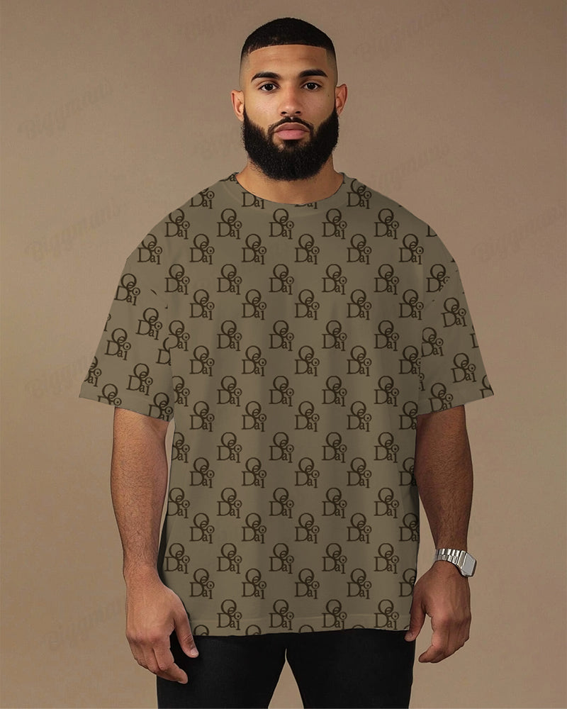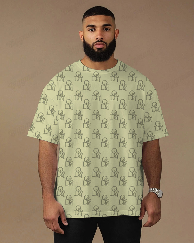 100% Cotton-Premium Jacquard Men's Loose Plus Size Short Sleeve T-Shirt