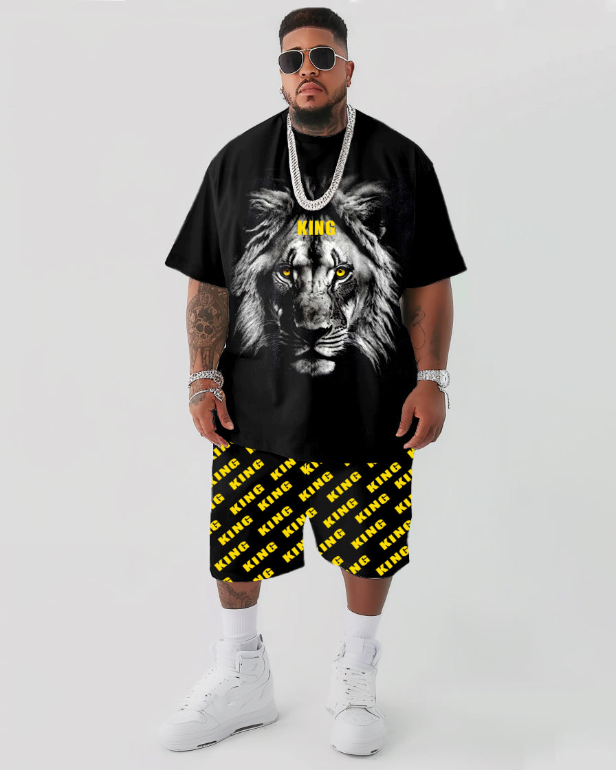 3D Lion Print T-Shirt Shorts Suit Men's Plus Size
