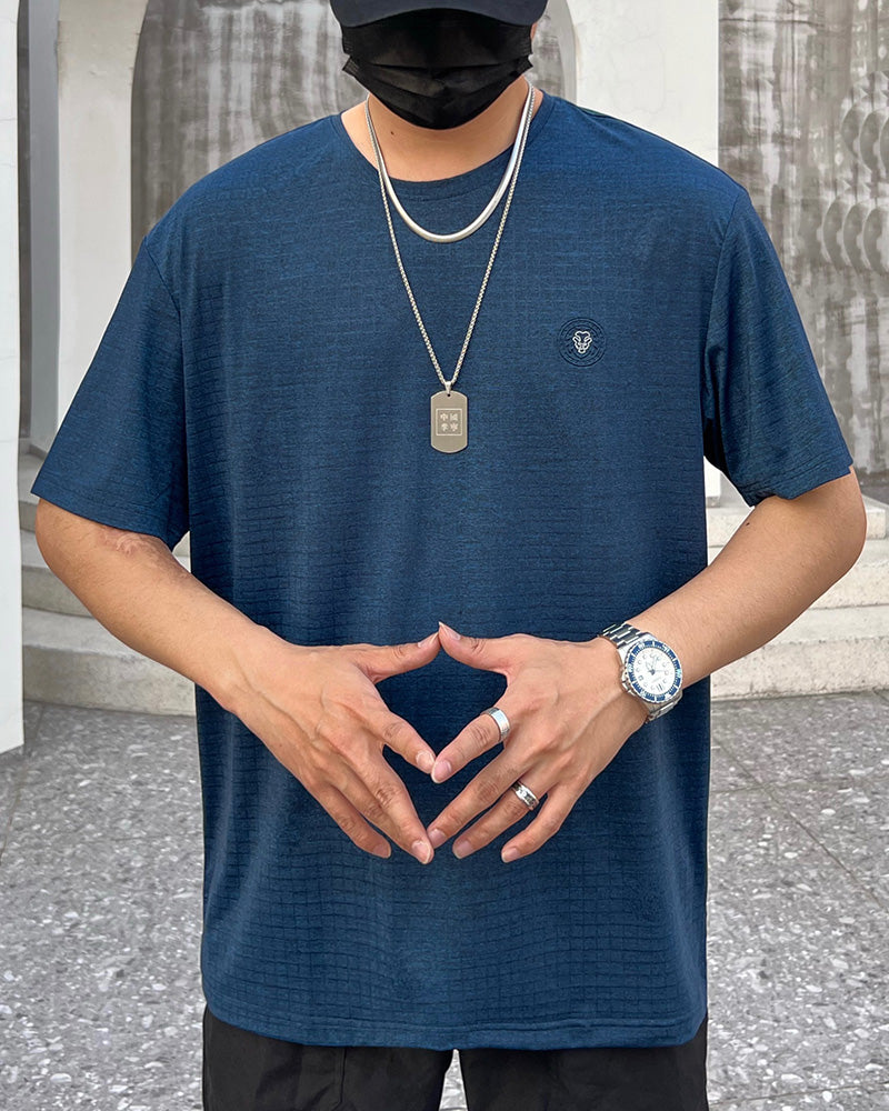 4XL-8XL Big & Tall Men's Daily Casual Blue Quick Dry Round Neck Short Sleeve T-Shirt