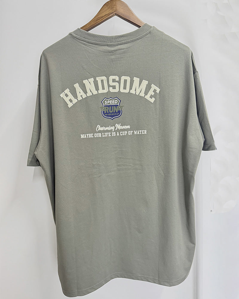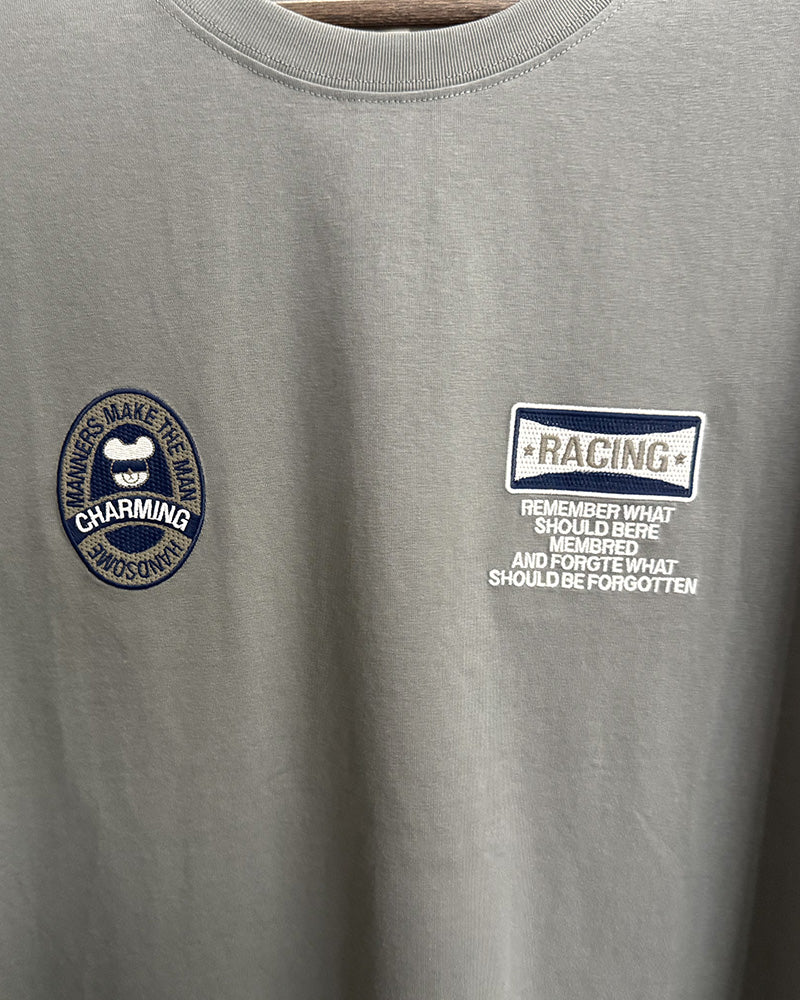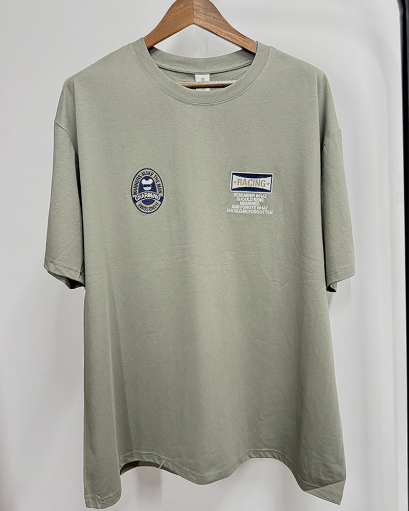 4XL-8XL Big & Tall Men's Daily Casual Letter Cartoon Embroidered Cotton Round Neck Short Sleeve T-Shirt 4XL-8XL