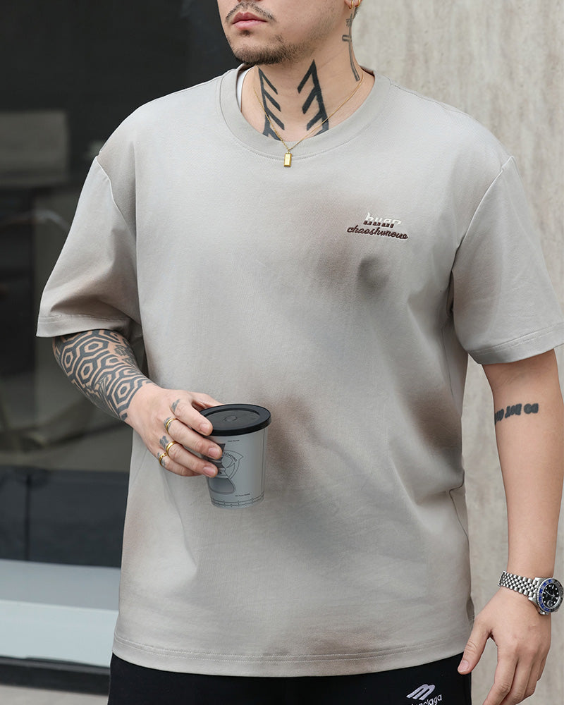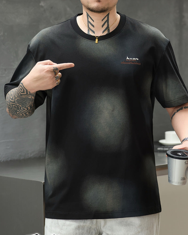 4XL-8XL Big & Tall Men's Daily Leisure Two-color Flower Washing Letter Cotton Crewneck Short-sleeved T-shirt