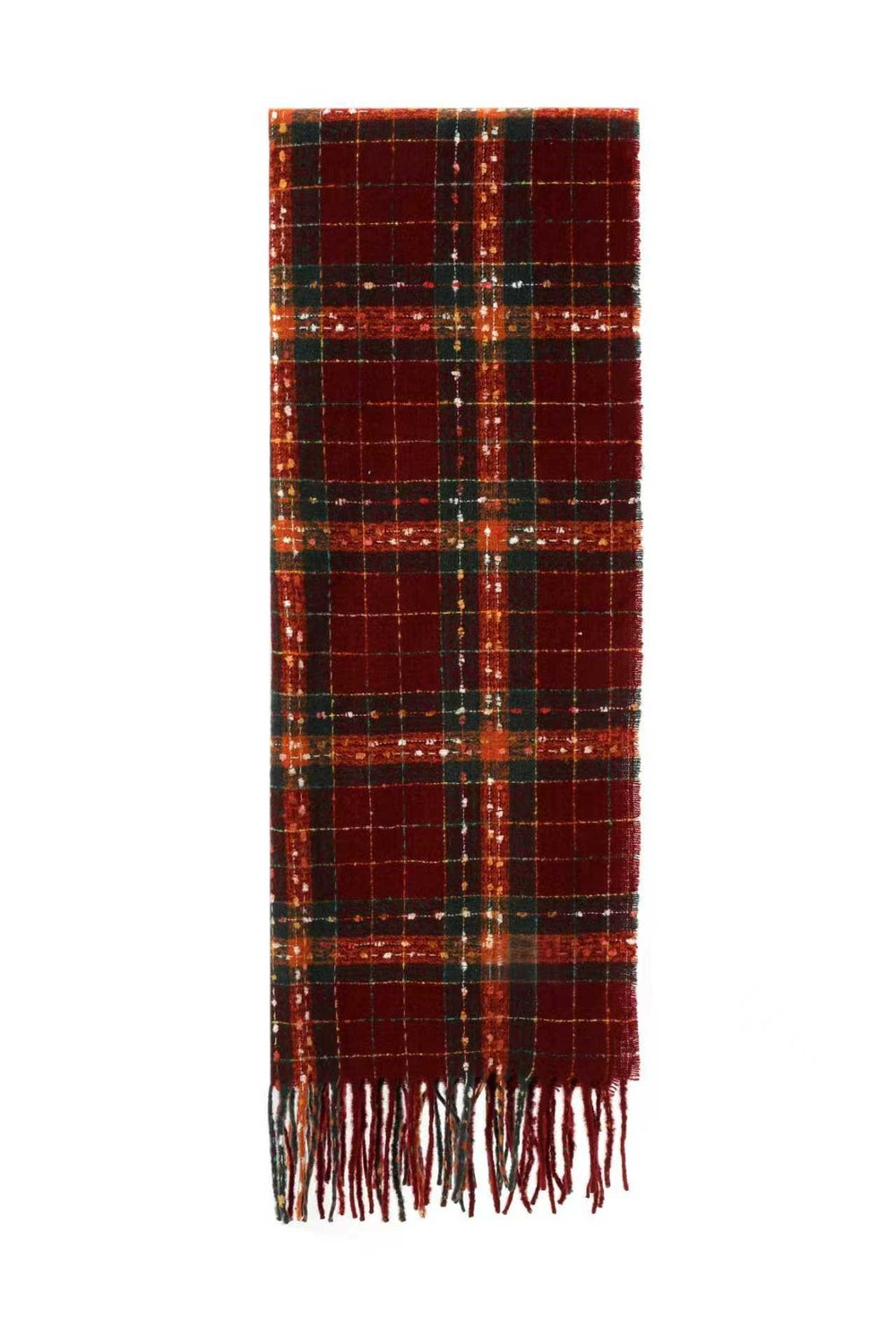 Autumn And Winter Christmas Red And Green Plaid Tassel Scarf Shawl