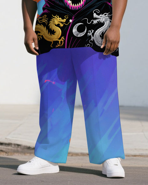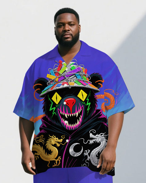 Big and Tall Man's Casual Fashion Bear Gradient Style Short Sleeve Shirt Pants 2-Piece Set