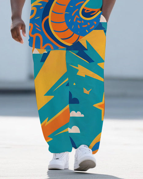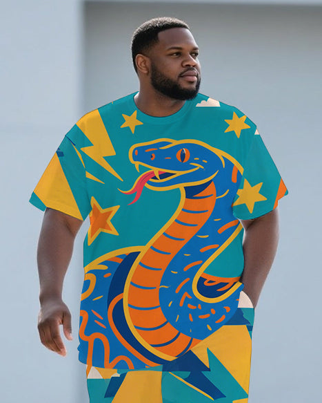 Big and Tall Men's Animal World Snake Cartoon Printed Outdoor Short Sleeve T-shirt Pants Set