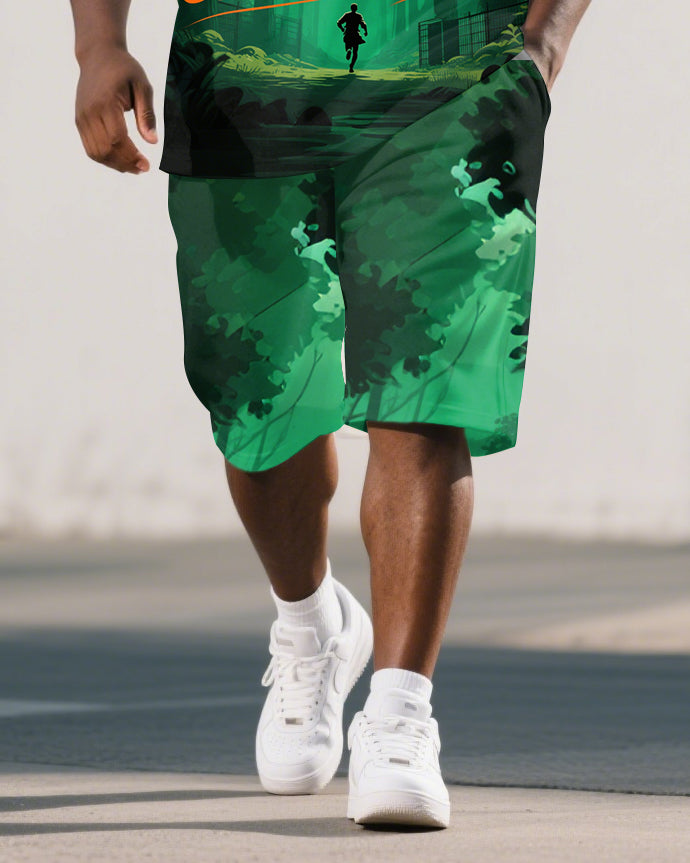 Big and Tall Men's Casual Forest Style PRISON Theme Lettering Short-Sleeve Polo Shirt Shorts Set