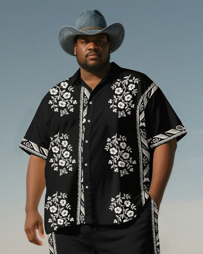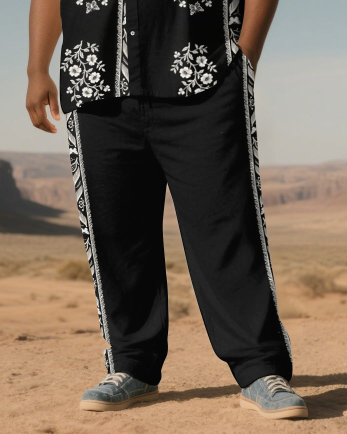 Big and Tall Men's Ethnic Floral Printed Western Outdoor Short-Sleeve Shirt Pants Sets