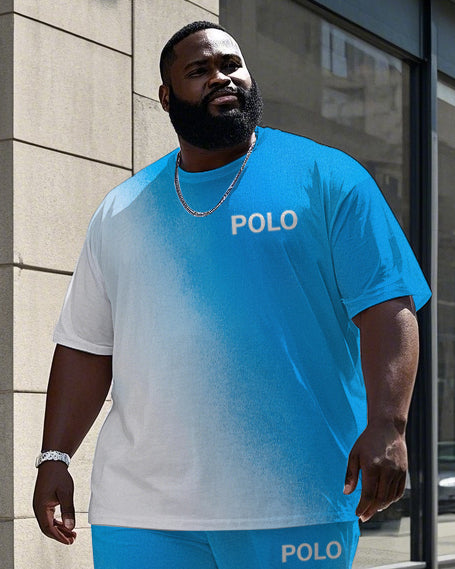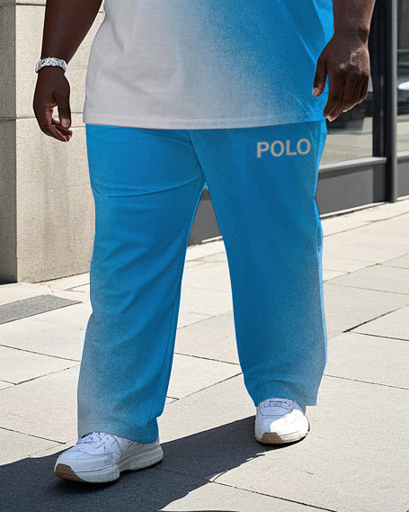 Big and Tall Men's Gradient Splicing Style POLO Letter Printed Short Sleeve T-shirt Pants Set
