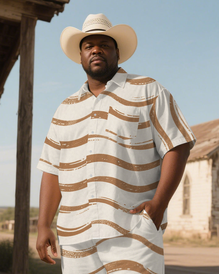 Big and Tall Men's Simple Stripes Printed Western Short-Sleeve Shirt Pants Sets