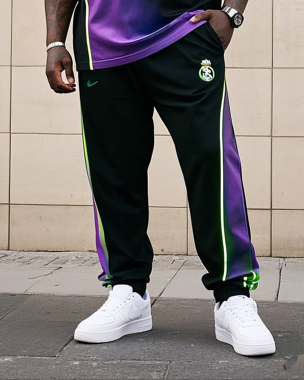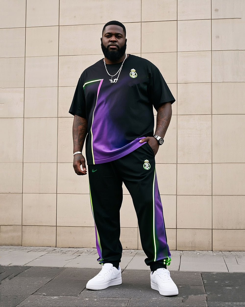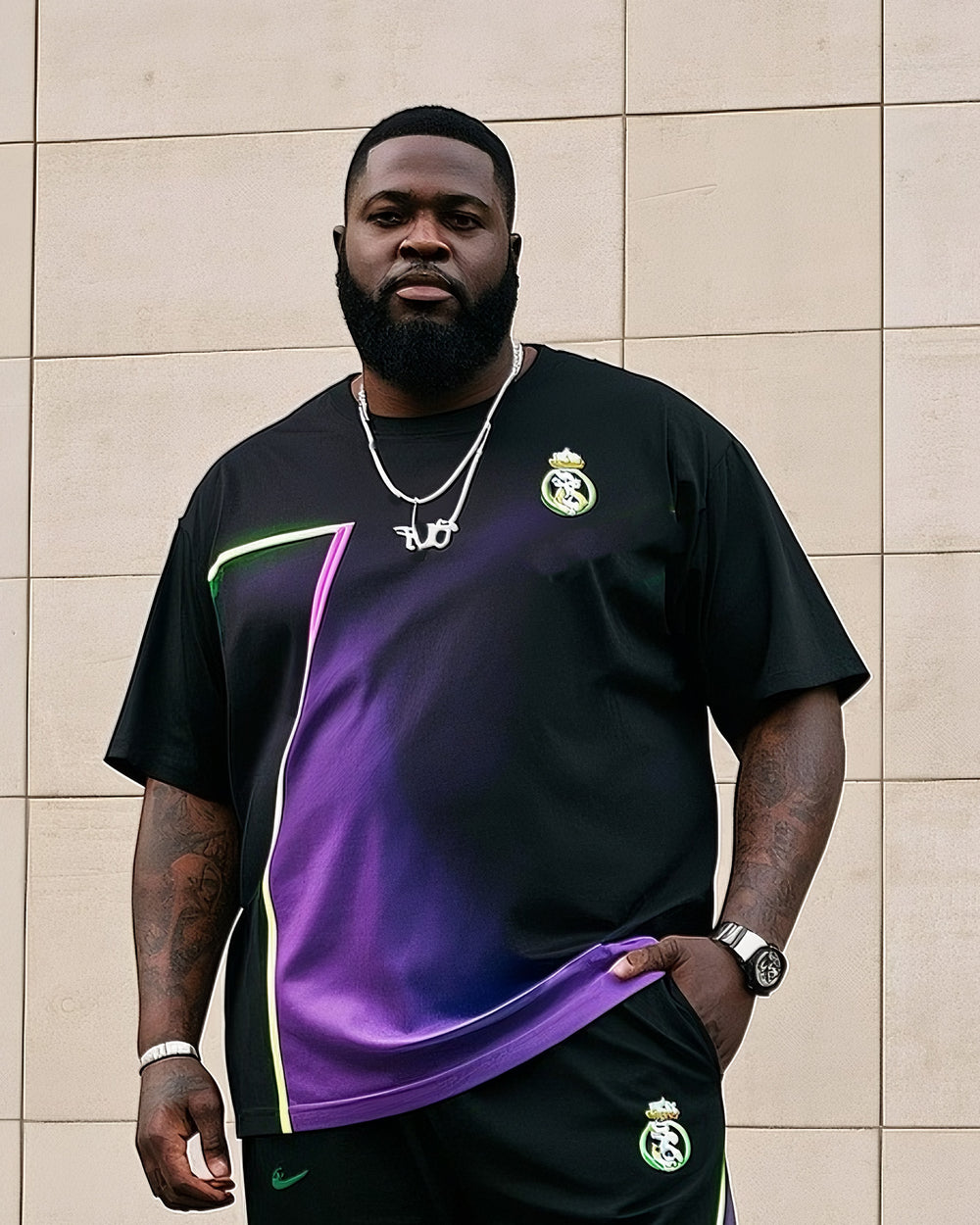 Big Boy Casual Sports Football Fans Gradient Art Design Clothes Round Neck Short Sleeve T-Shirt Trousers Suit