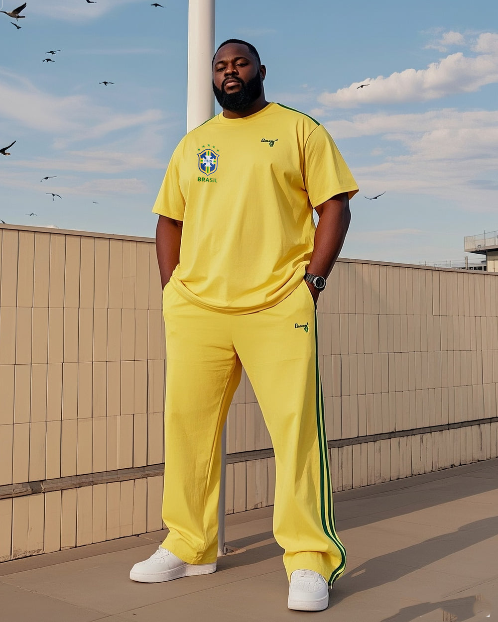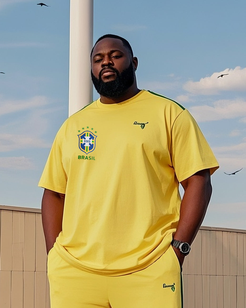 Big Boy Casual Sports Football Style Fans Striped Crewneck Short Sleeve T-Shirt Trousers