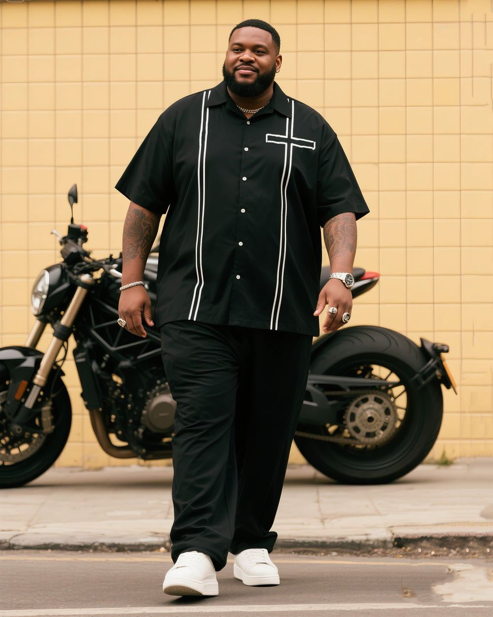 Big Boy Cross Stripe Short Sleeve Black Shirt Trousers Suit