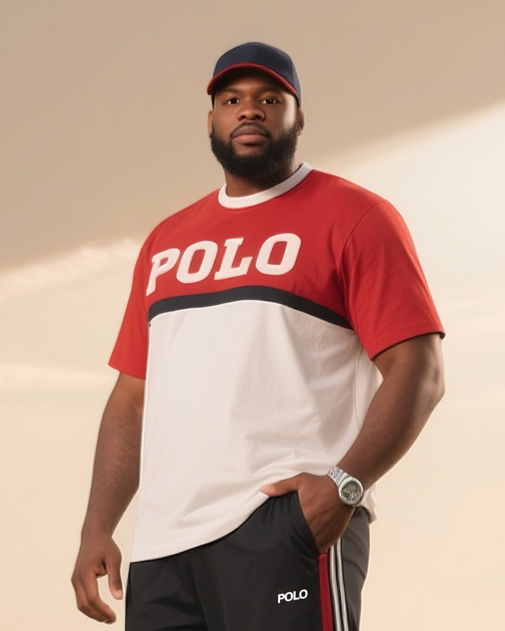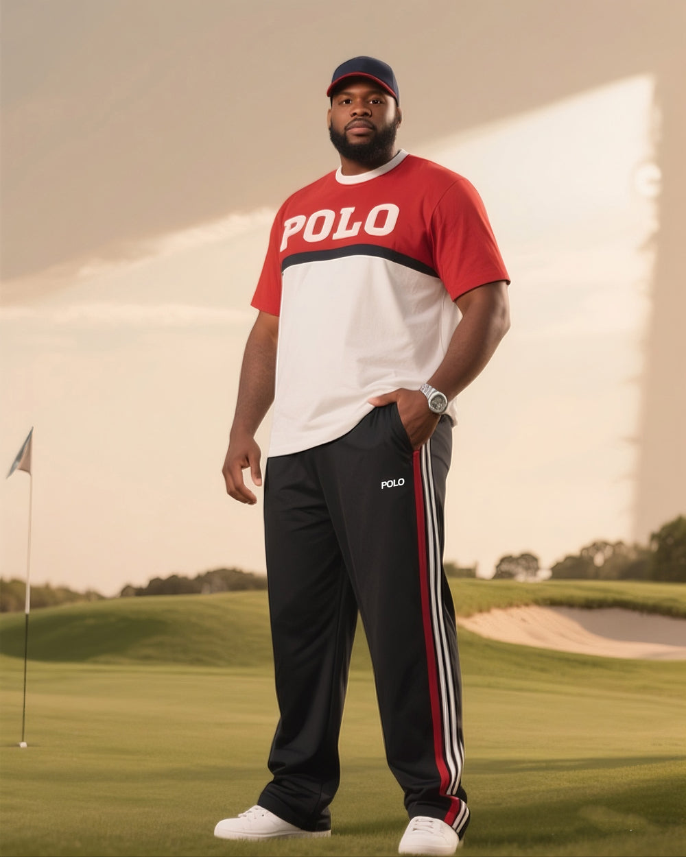 Big Boy Daily Casual Contrast Color English POLO Round Neck Short Sleeve T-Shirt Trousers