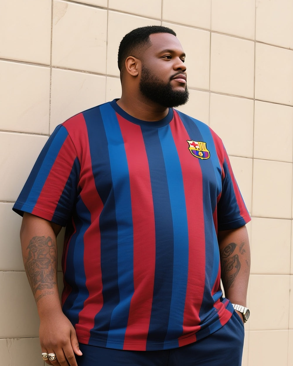 Big Boy Daily Casual Prussian Blue Fans Crewneck Short Sleeve T-shirt Trousers Suit