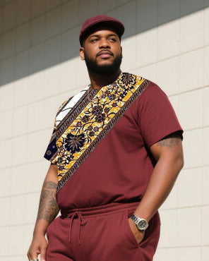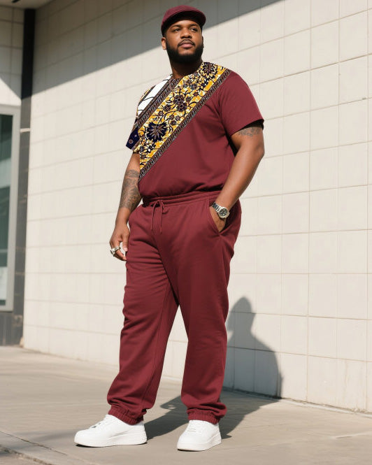 Big Boy Daily Casual Retro Impression Painting Creative Stitching Texture Short Sleeve Pants Suit