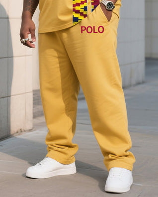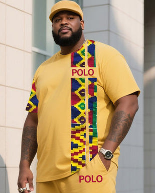 Big Boy Daily Casual Shenbulun Yellow Creative Stitching Texture Polo English Short-sleeved Pants Suit