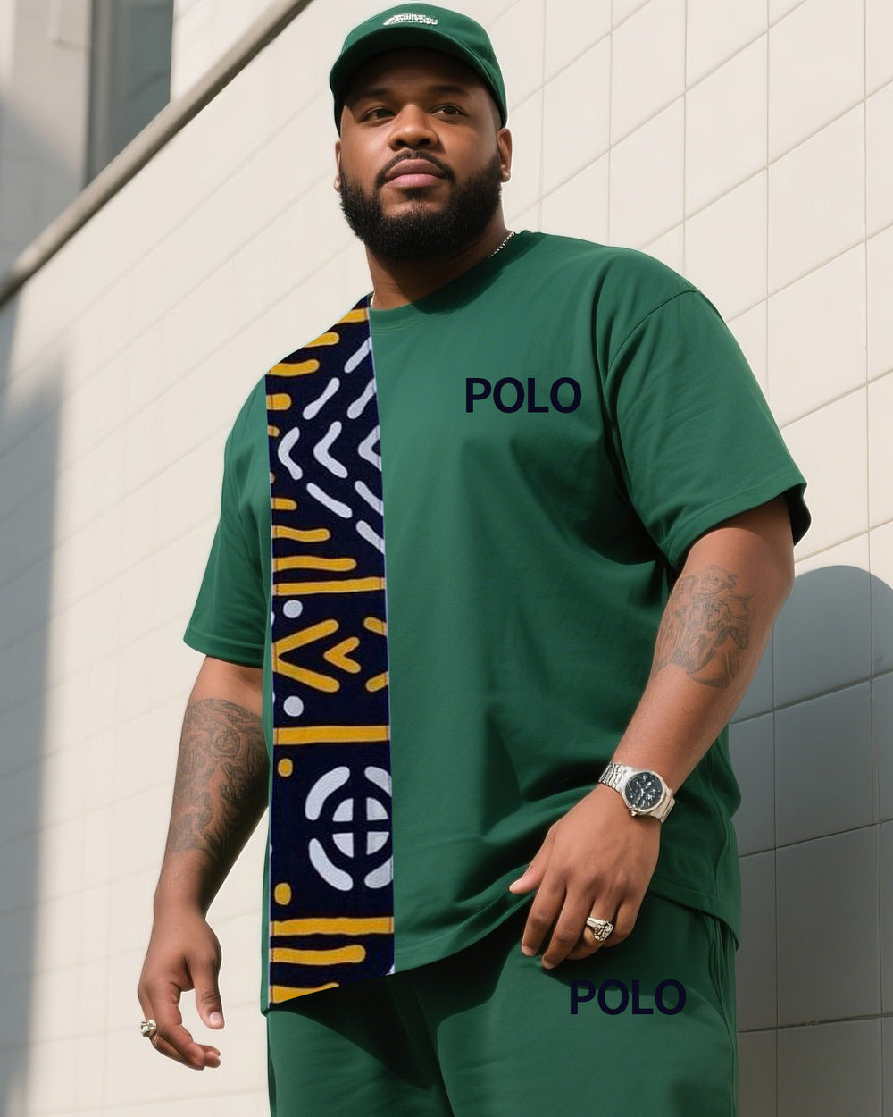 Big Boy Daily Casual Simple African Impression Print Striped Short Sleeve Trousers Suit
