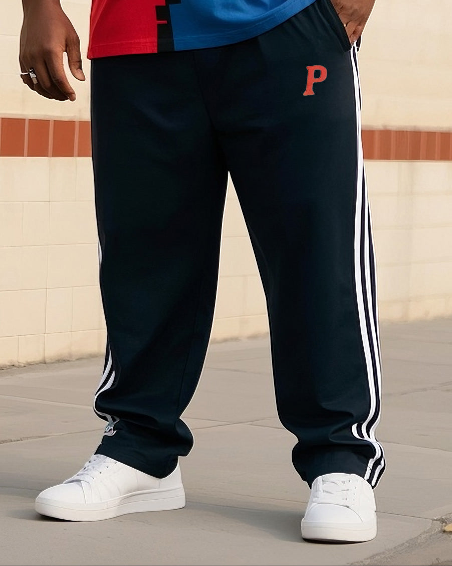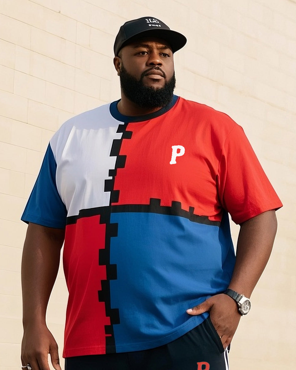 Big Boy Daily Casual Simple Classic Geometric Red Blue White Color Collar Short Sleeve T-Shirt Striped Trousers