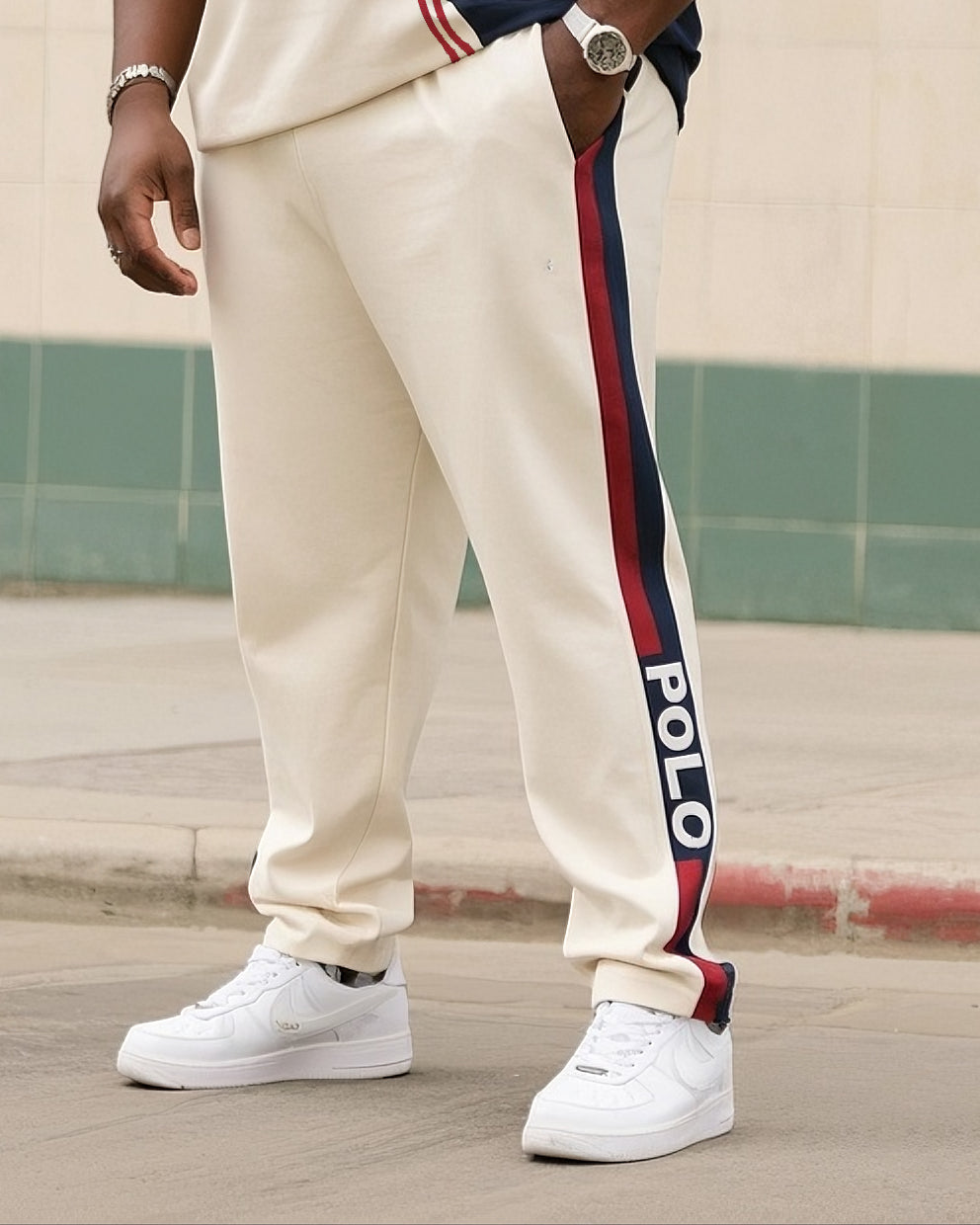 Big Boy Daily Casual Simple Color-matching Polo English Round Neck Short-sleeved T-shirt Striped Trousers