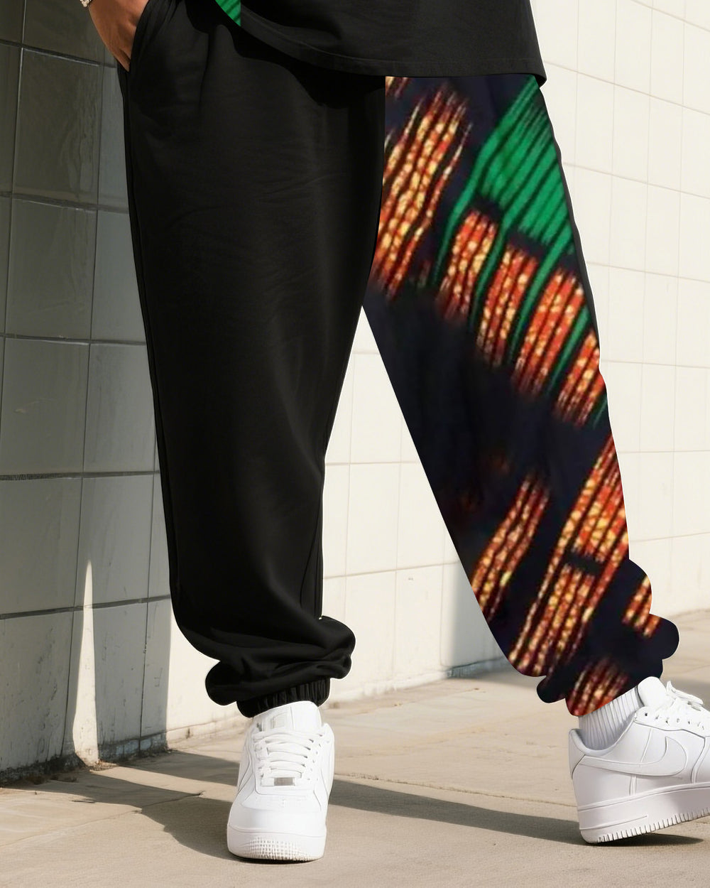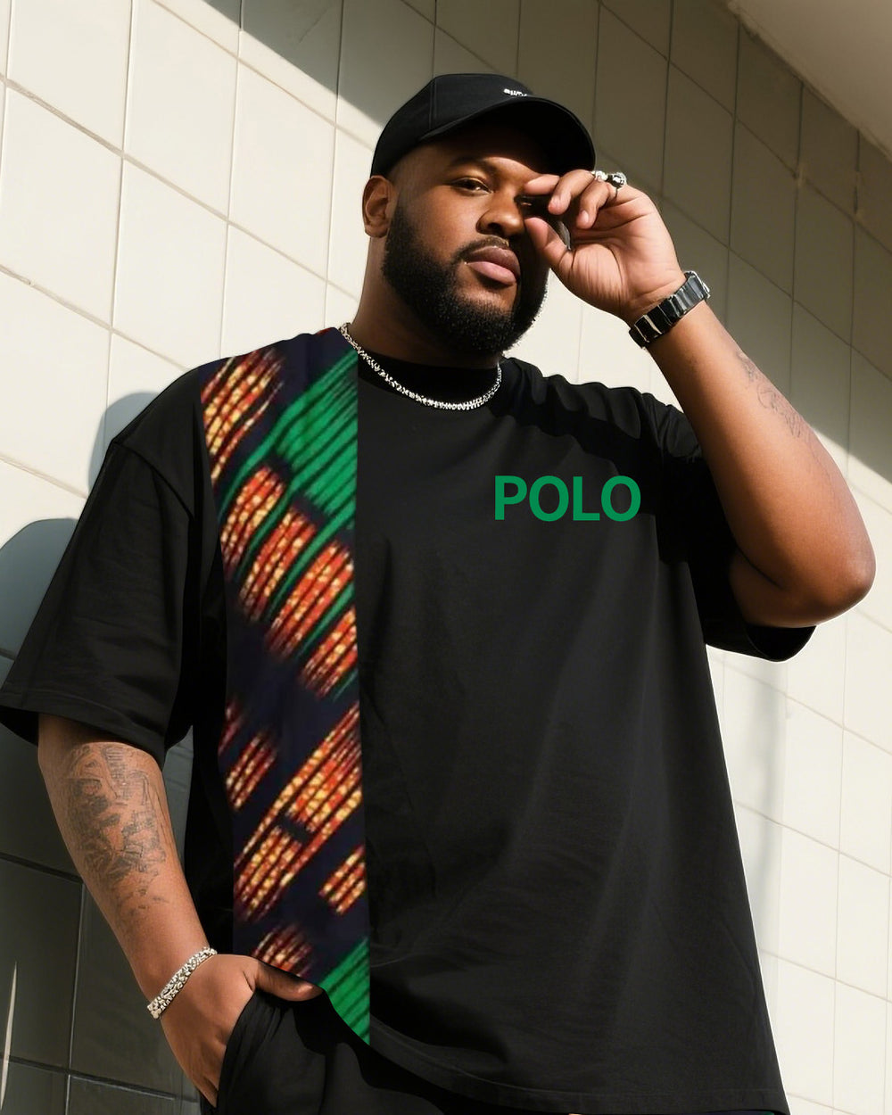 Big Boy Daily Casual Simple Impression Painting Creative Stitching Texture POLO English Short-sleeved Trousers Suit