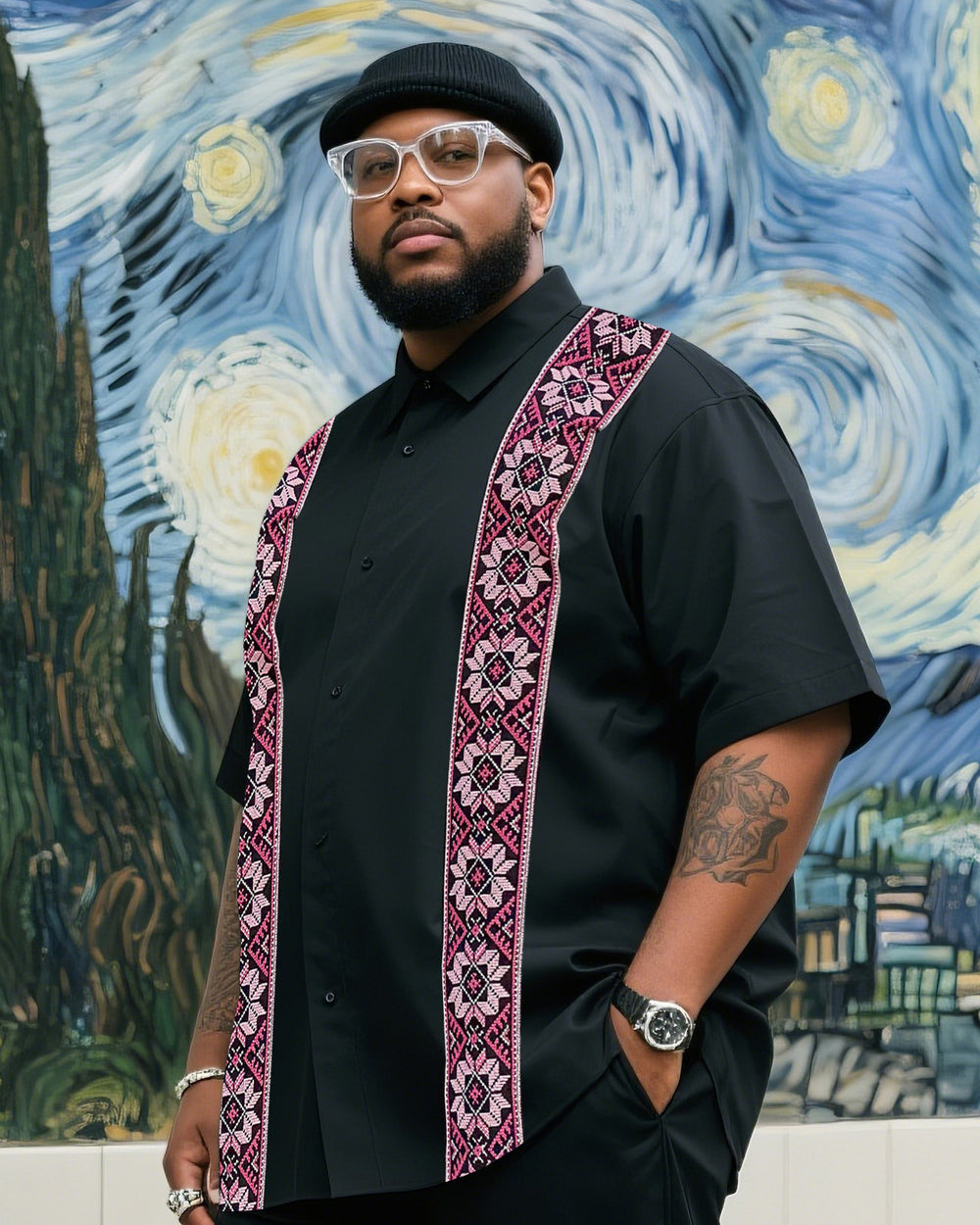 Big Boy Essential 2025 Fashion High Sense Black Double Line Short Sleeve Shirt Trousers Suit