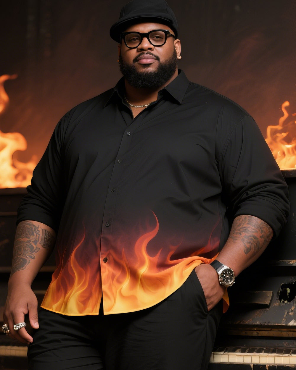 Big Boy Essential 2025 Fashion Popular Art Flame Burn Mark Long Sleeve Shirt Trousers Suit