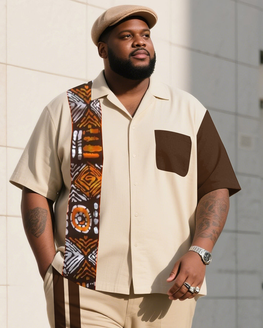 Big Boy Essential 2025 Fashion Striped Colorblock Short Sleeve Shirt Trousers Suit