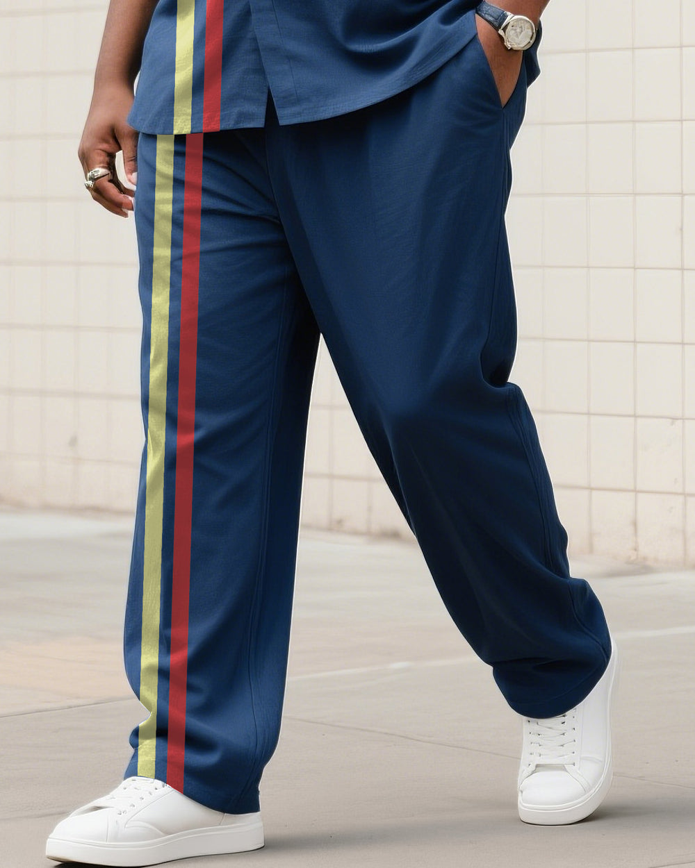 Big Boy Essential 2025Prussian Blue Striped Pocket Printed Short Sleeve Shirt Trousers Suit