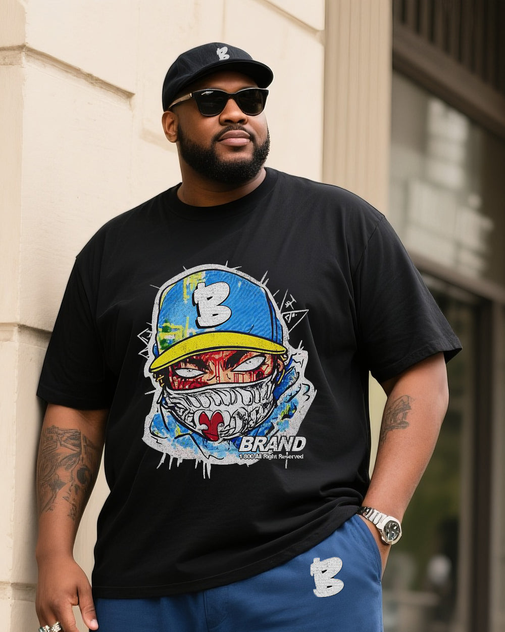 Big Boy Essential Fashion Street Trendy Street Kid Printed Short Sleeve T-Shirt Trousers Suit