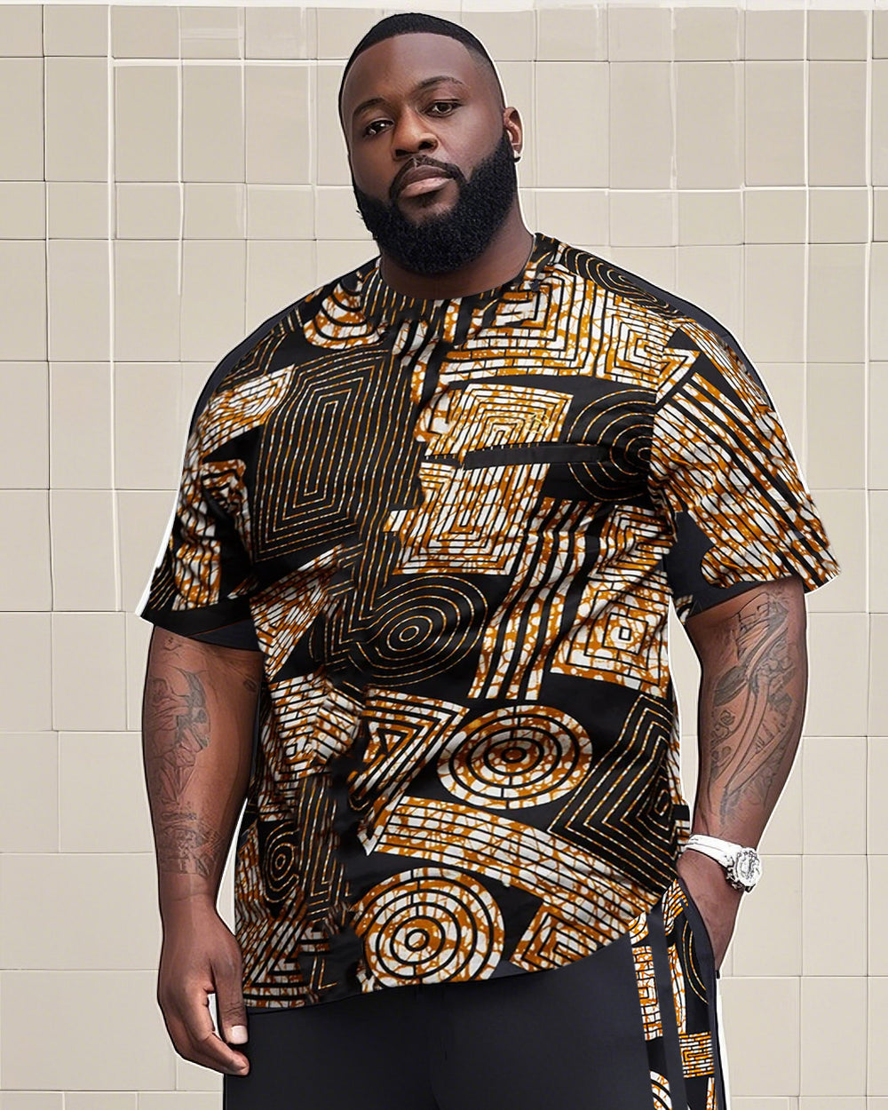 Big Boy Essential Retro African Impression Totem Print Short Sleeve Trousers Suit