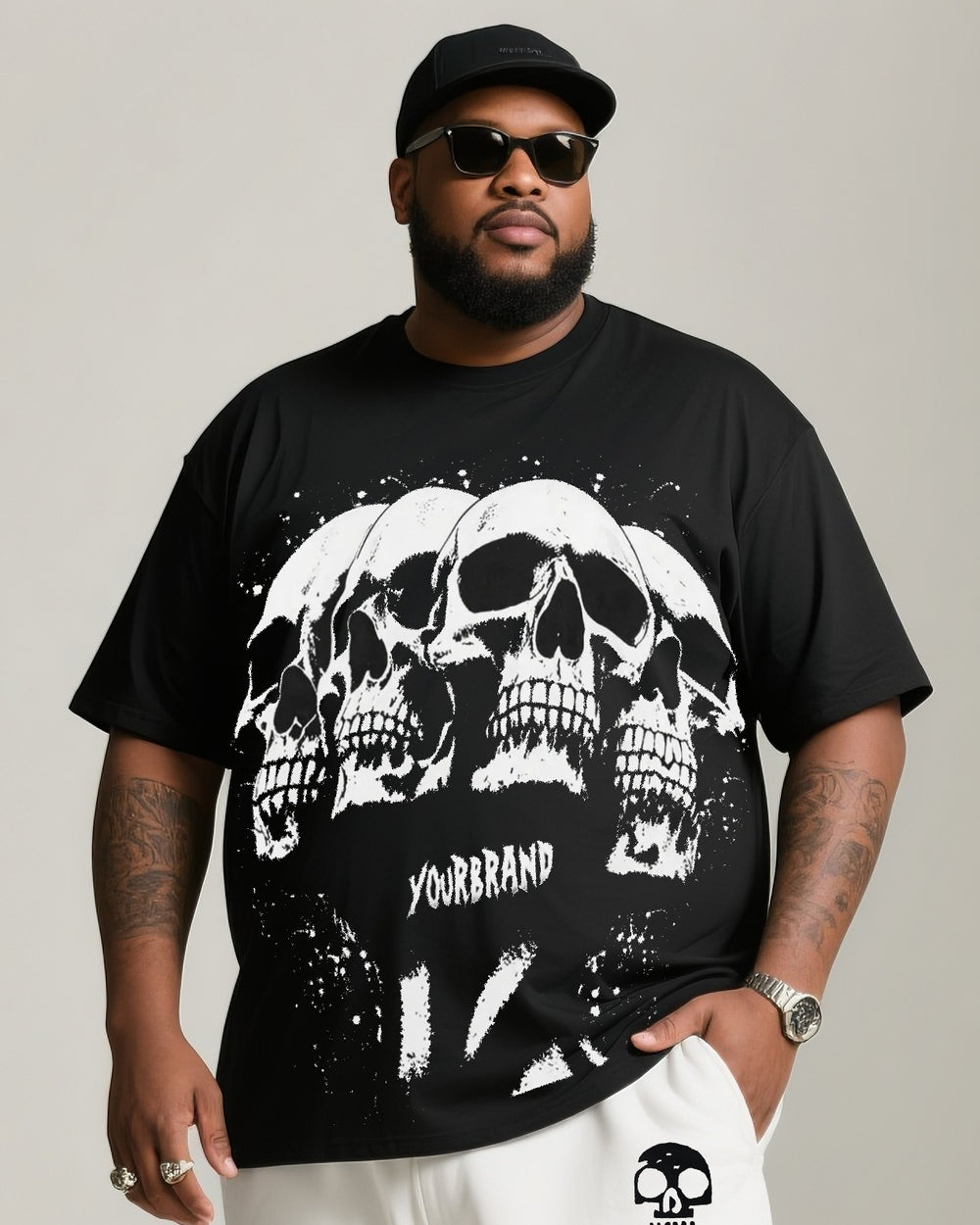 Big Boy Fashion Street Daily Casual Trend Skull Crewneck T-shirt Trousers Suit
