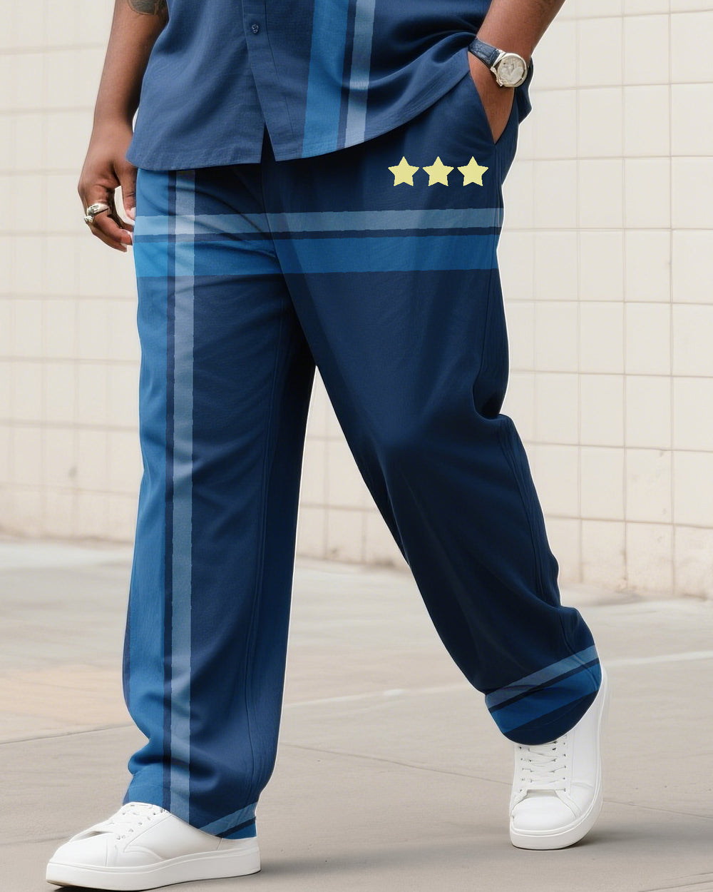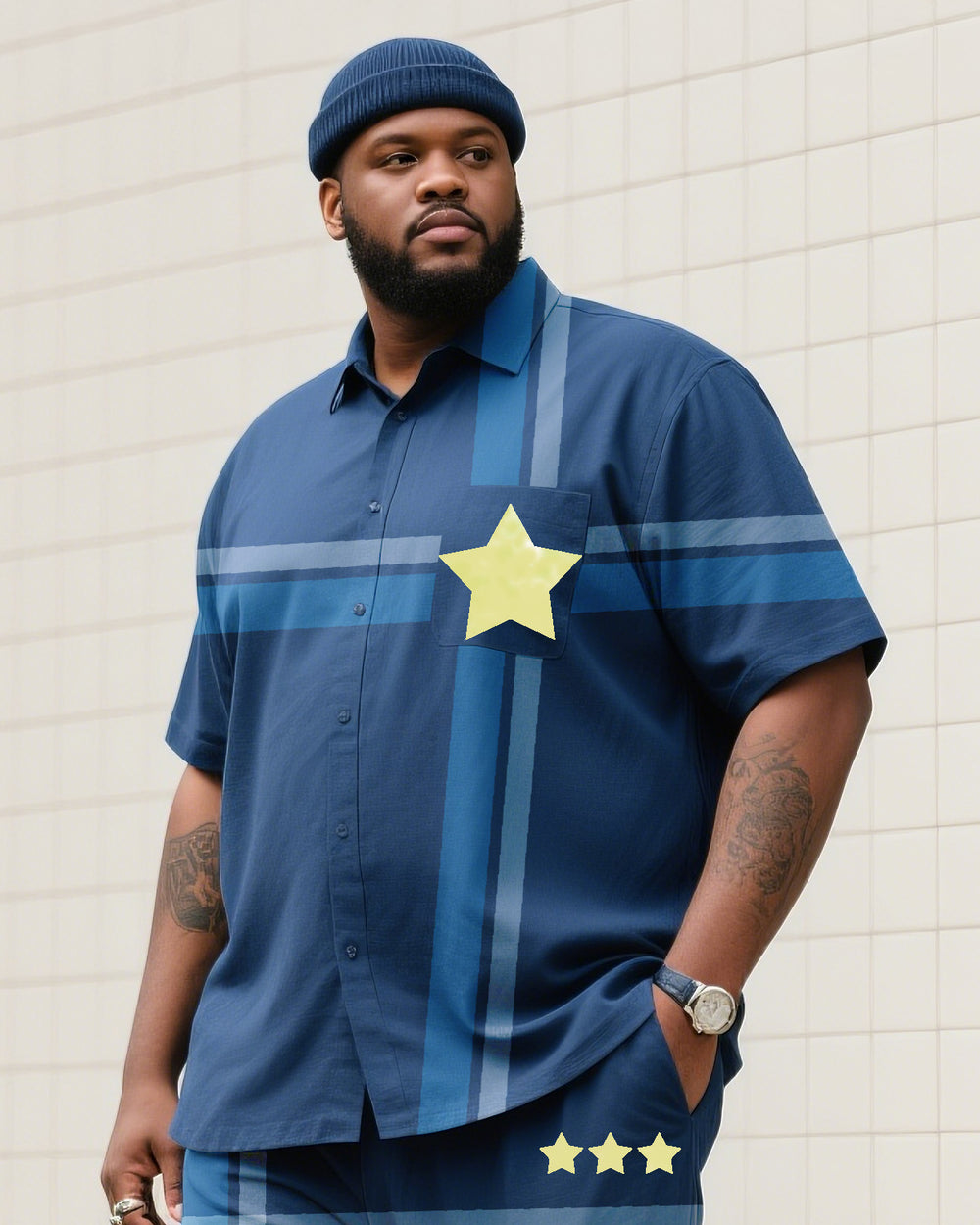 Big Boy Must Have 2025 Fashion High Sense Prussian Blue Line Stars Short Sleeve Shirt Trousers Suit