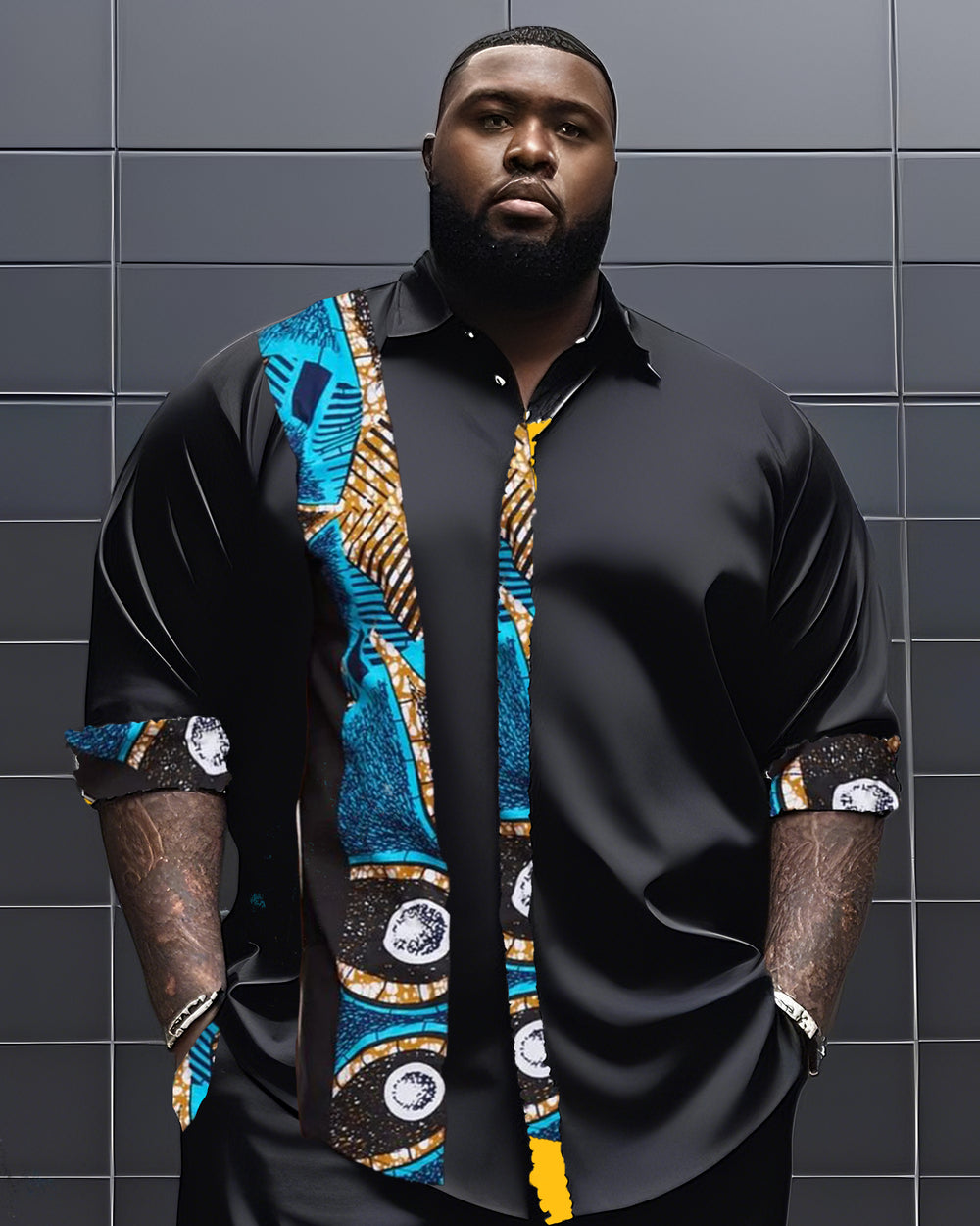 Big Boy Must Have Street Fashion African Impression Totem Print Long Sleeve Shirt Trousers Suit