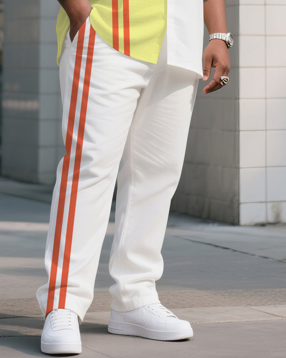 Big Boy Must-Have Striped Colorblock Short Sleeve Shirt Trousers Suit
