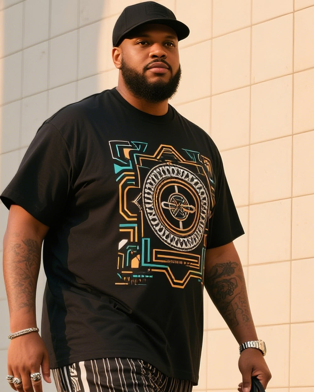 Big Boy Street Fashion Retro Printed Short Sleeve Trousers Suit