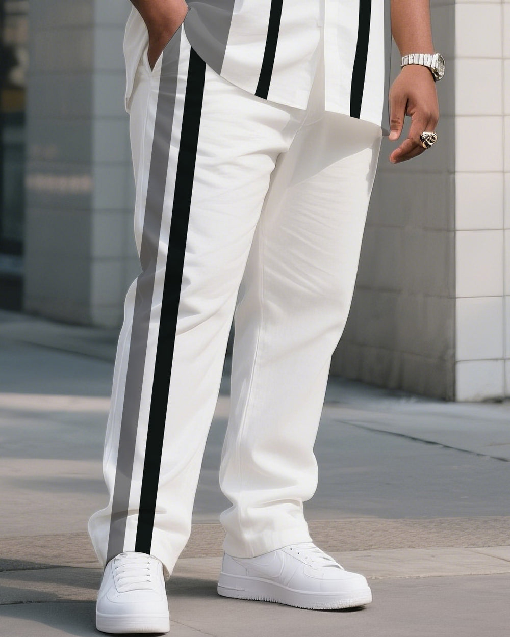 Big Boy Striped Contrast Short Sleeve Shirt Trousers Suit