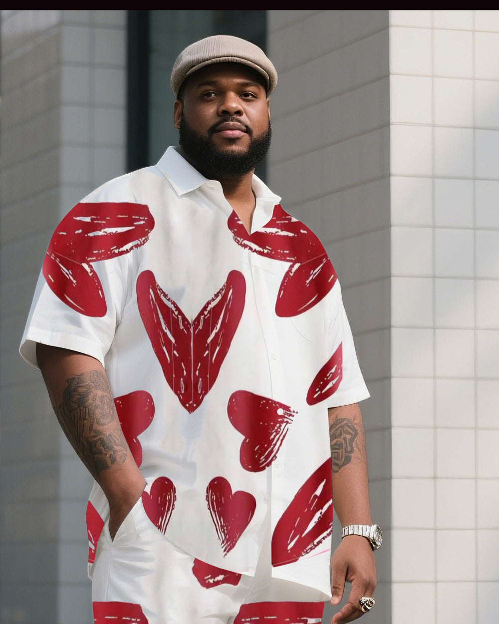 Big Boy Valentine Print Short Sleeve Shirt Trousers Suit
