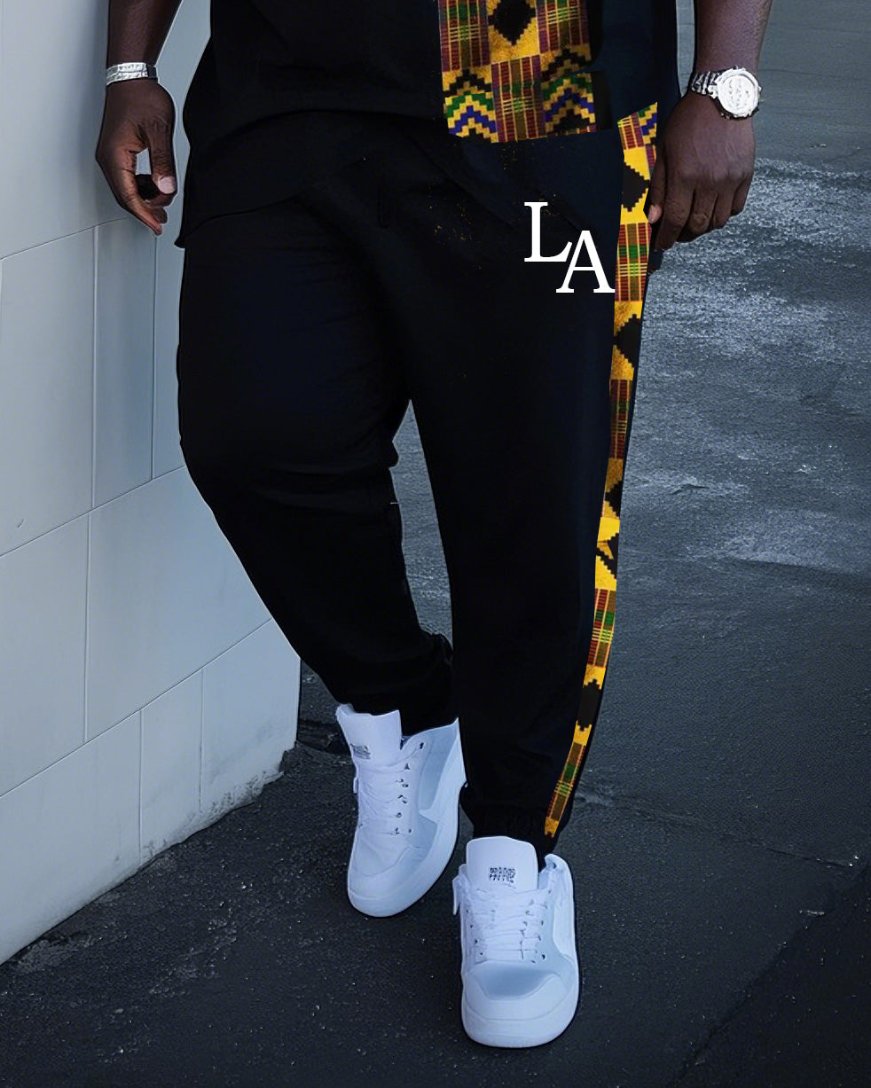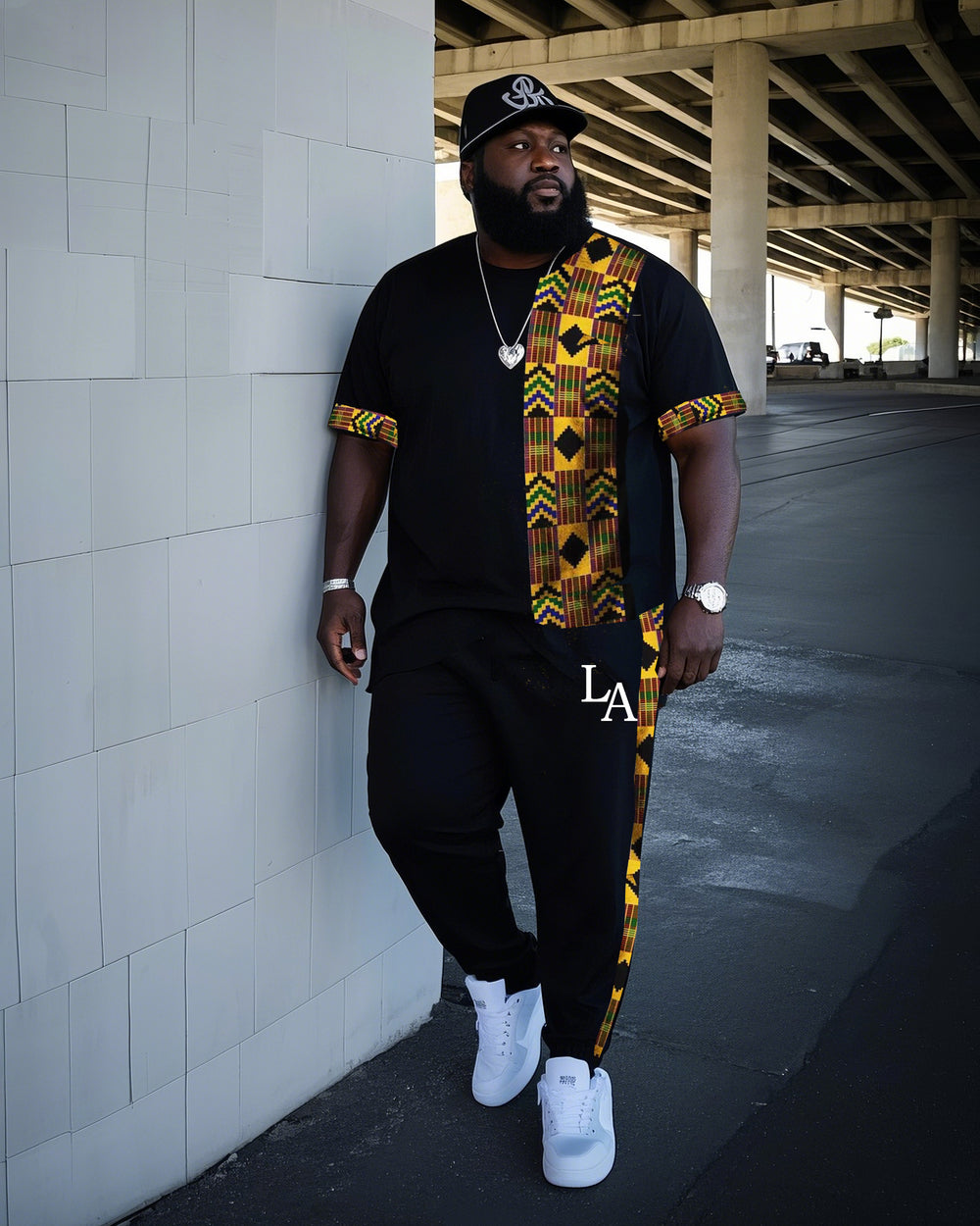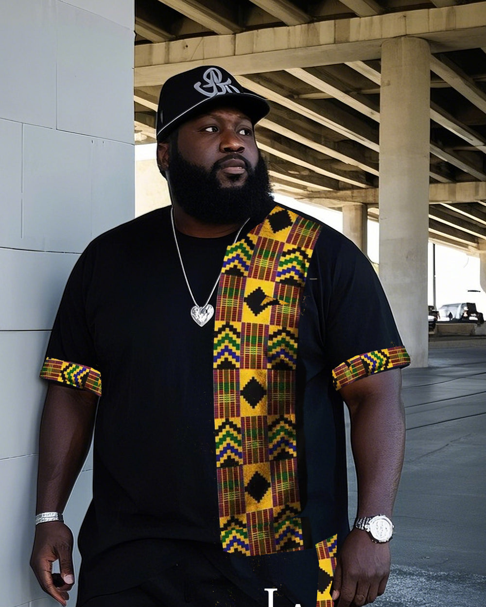 Big Boys African Totem Print Short Sleeve Trousers Suit