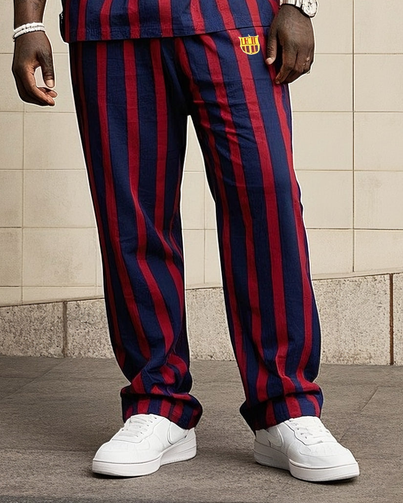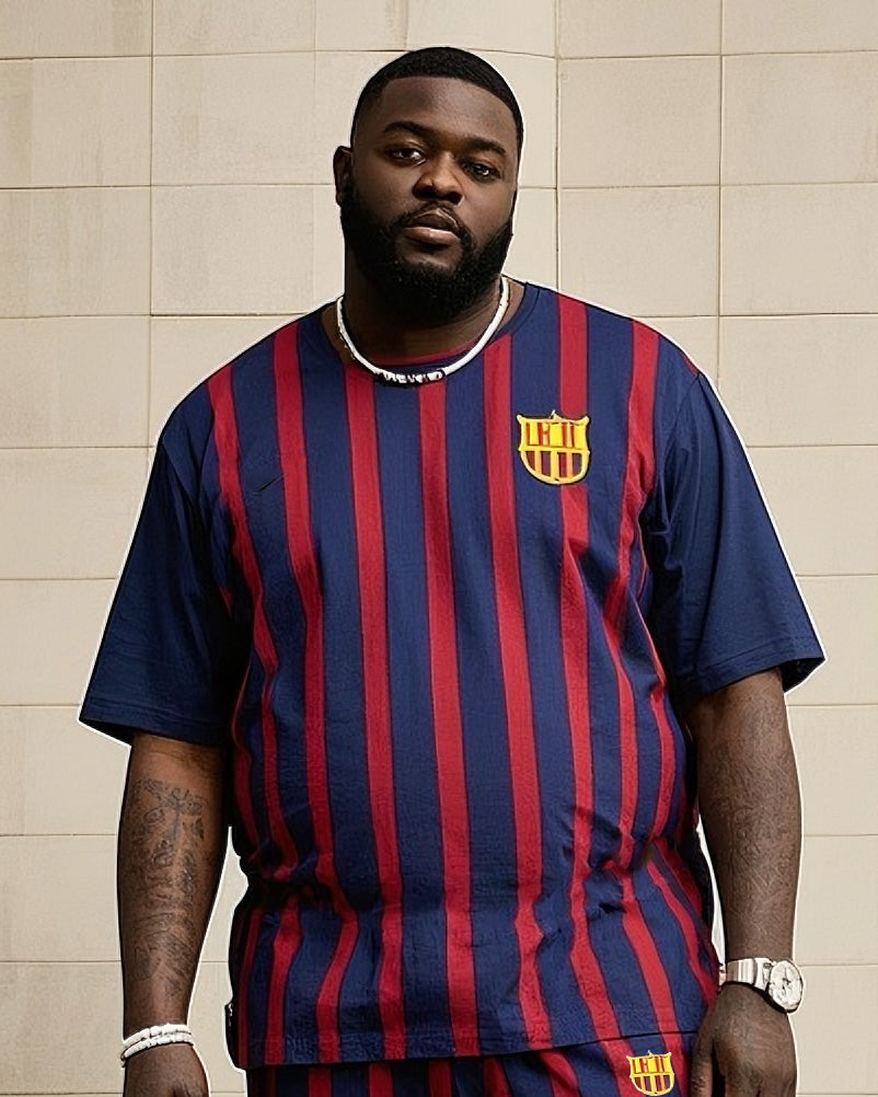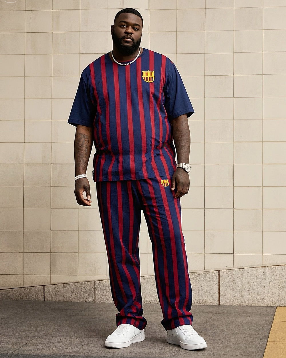 Big Boys Casual Sports Football Fans Barcelona Striped Design Round Neck Short Sleeve T-Shirt Trousers Suit