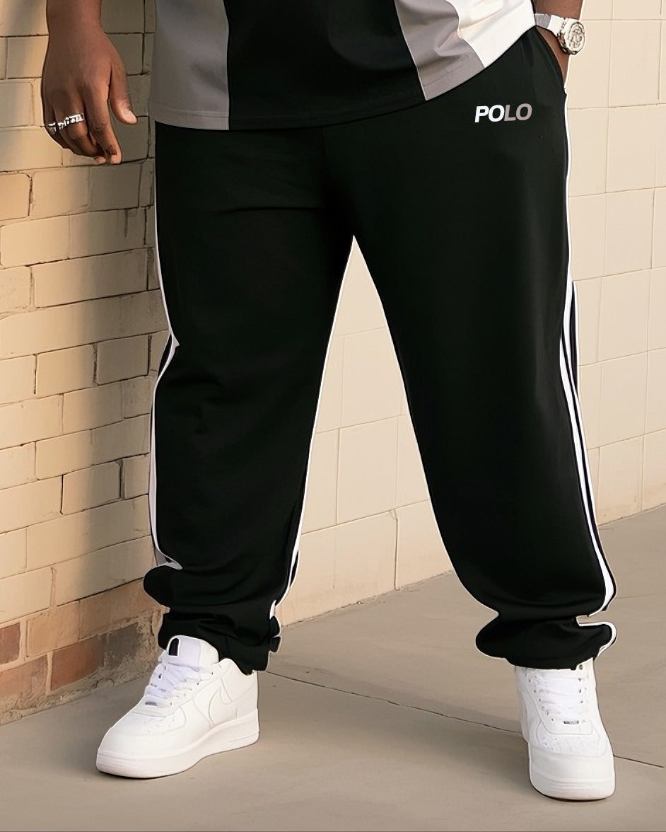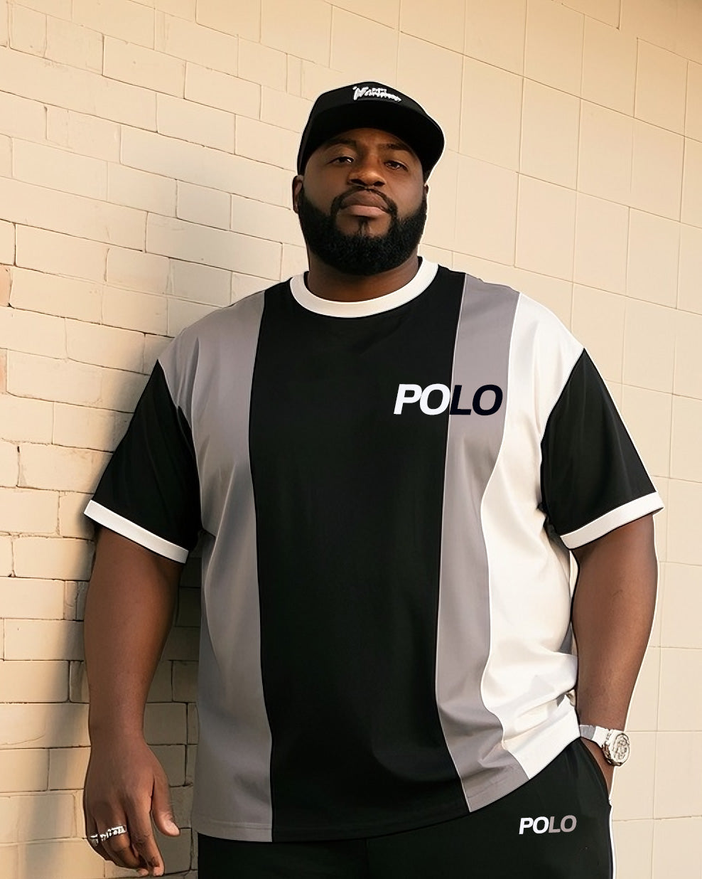 Big Boy's Daily Casual Simple Classic Geometric Black And White Grey Color-matching Crewneck Short-sleeved T-shirt Striped Trousers