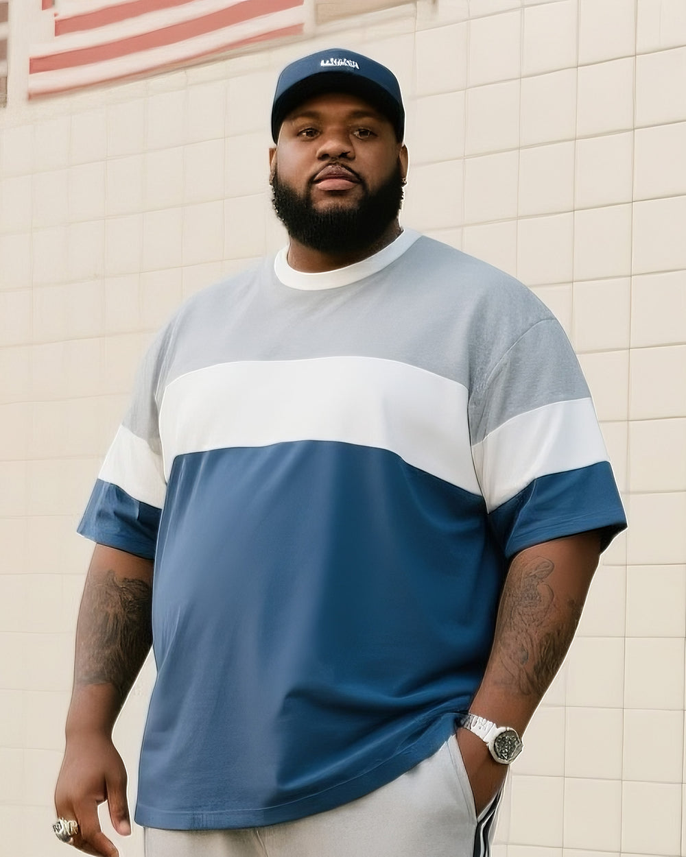 Big Boy's Daily Casual Simple Classic Geometric Color-matching Crewneck Short-sleeve T-shirt Striped Pants