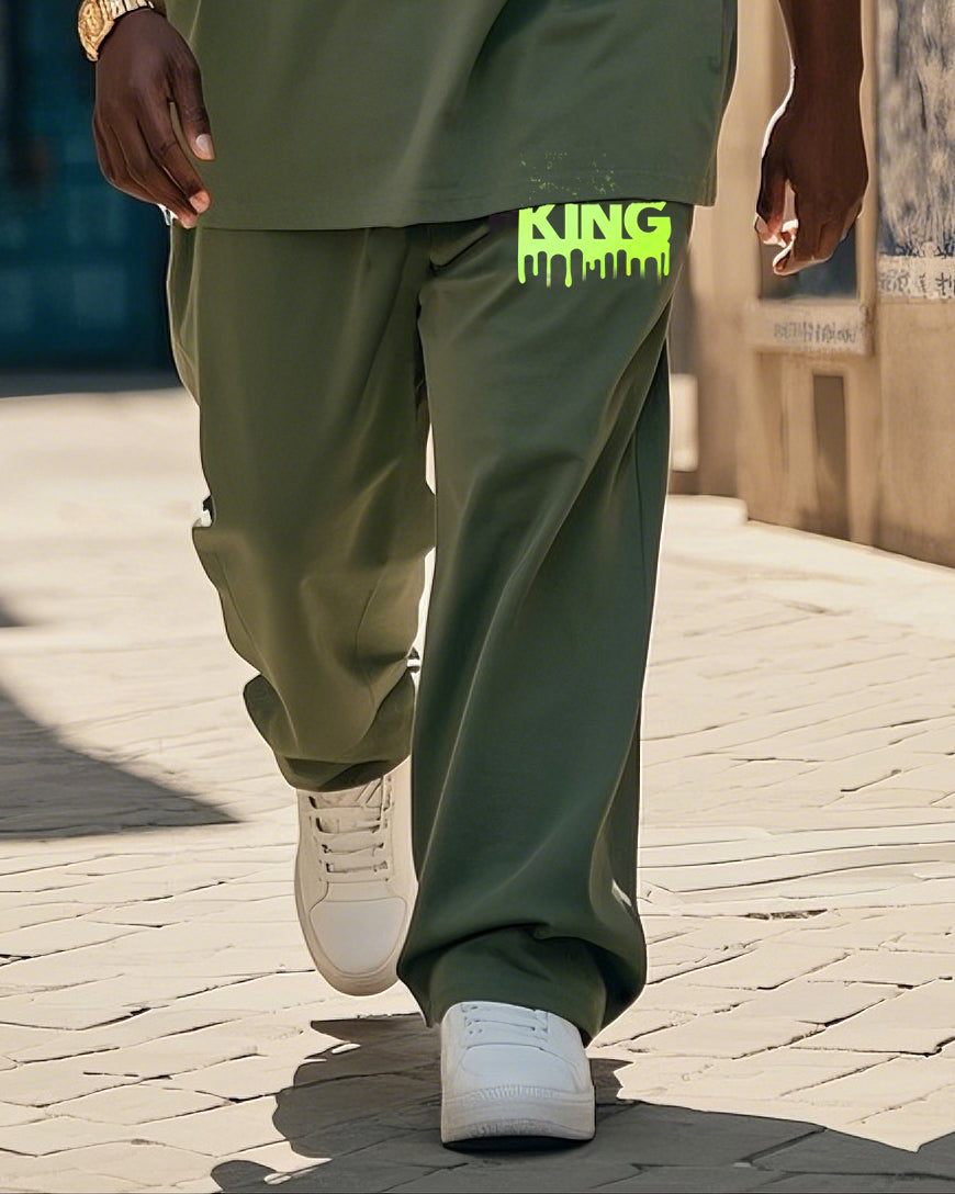 Big Boys June Festival Black History Green Bottom Print Short Sleeve Trousers Suit