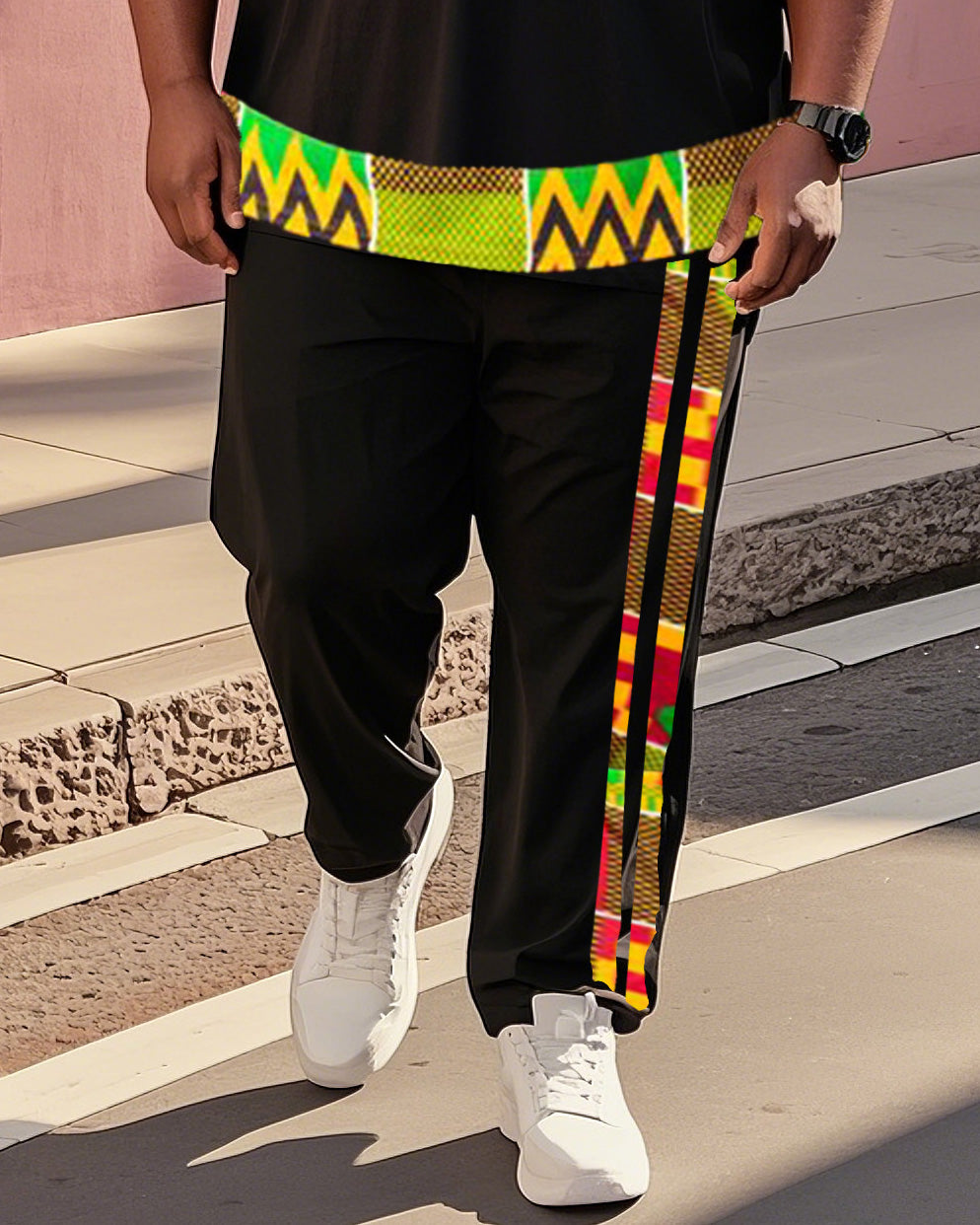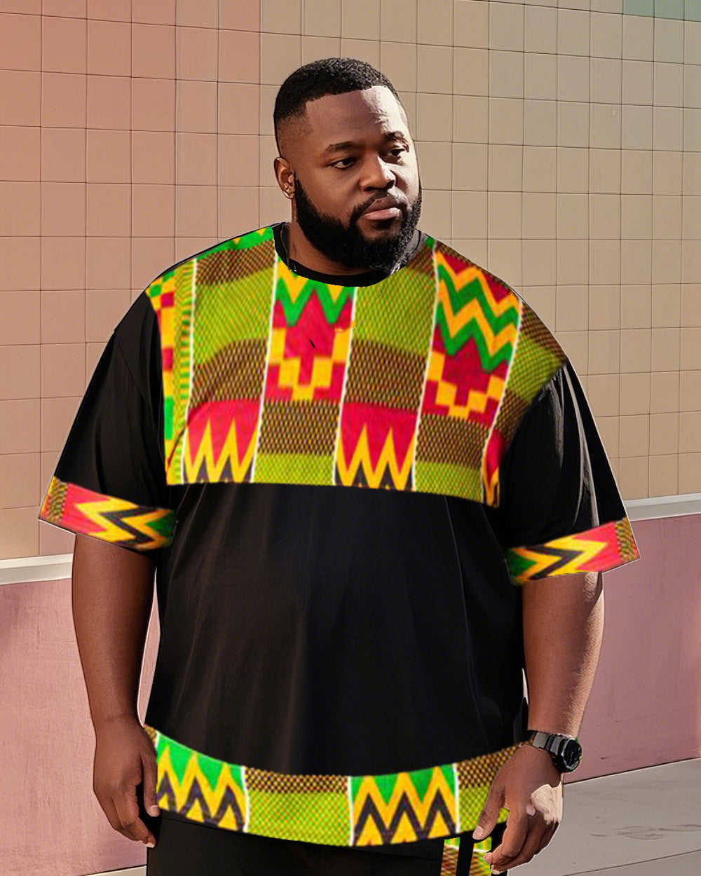 Big Boy's Must-Have Colorblock African Impression Totem Print Short Sleeve Trousers Suit