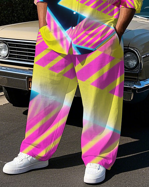 Big Guy's Abstract Artistic Geometric Pattern Theme Casual Long Sleeve Shirt Pants Set
