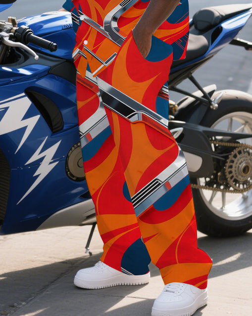 Big Guy's Abstract Fire with Machine Technological Printed Long Sleeve Shirt and Pants Set