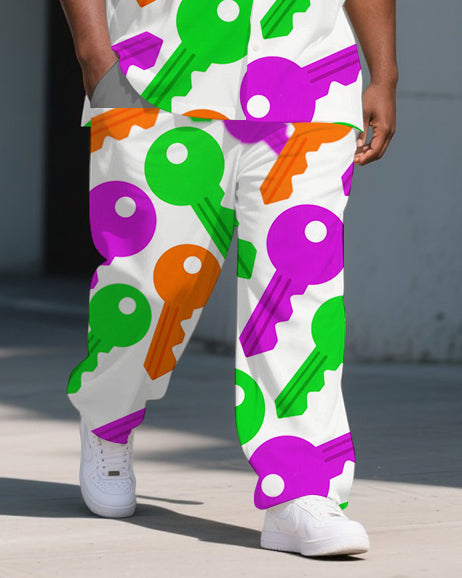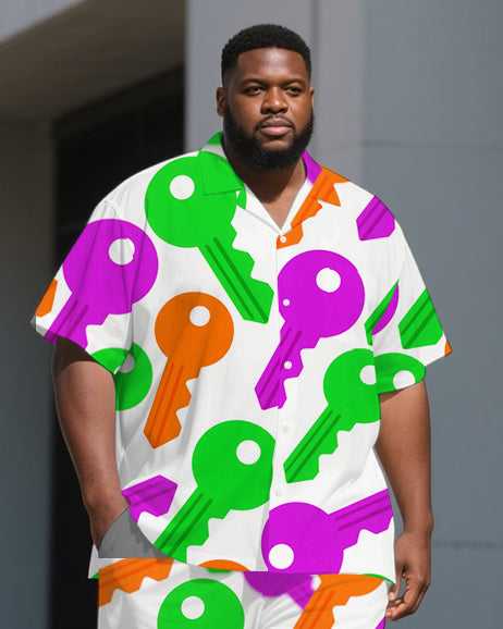Big Guys Cartoon World Colorful Key Printed Laid Back Short-Sleeve Shirt Pants Sets