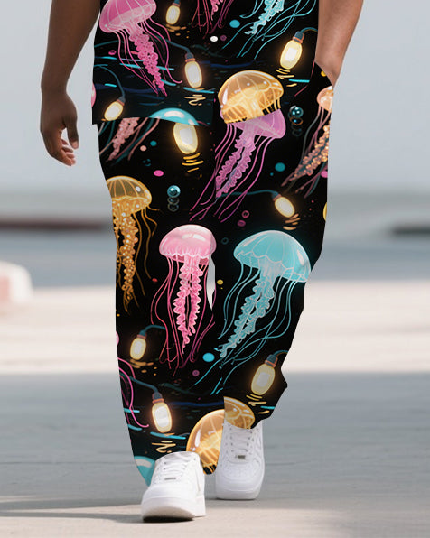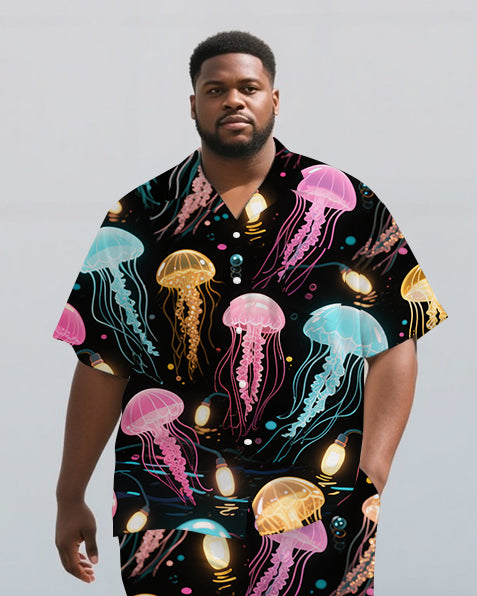 Big Guys Casual Cartoon World Dreamy Jellyfish Printed Short-Sleeve Shirt Pants Sets