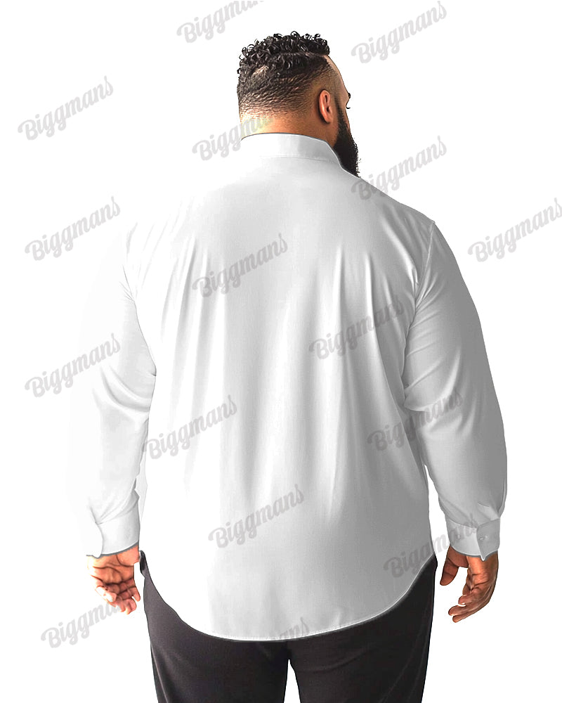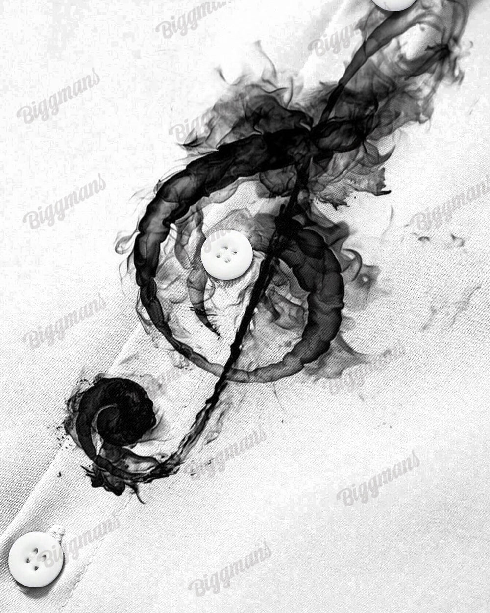 This striking white big guy's shirt features a black ink splash print of musical notes that embodies contemporary artistry. Its versatility seamlessly transitions from casual outings to formal gatherings. Its bold print speaks to individuality while maintaining a chic aesthetic, ensuring you stand out in style.