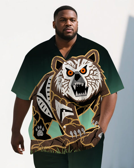 Big Guy's Defensive Bear Cartoon Gradient Effect Casual Short Sleeve Shirt Pants Set
