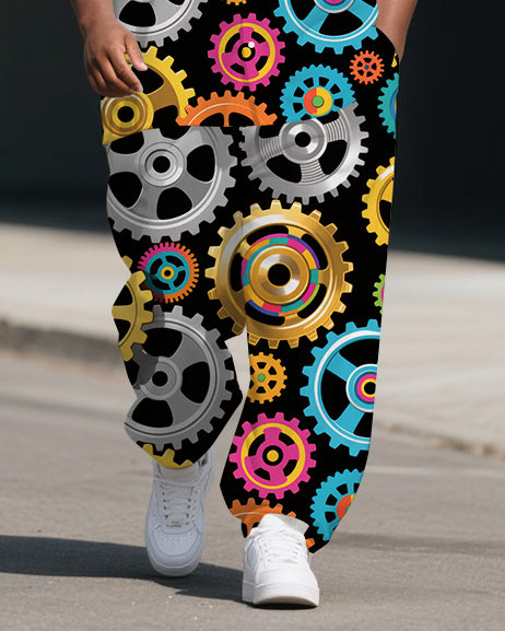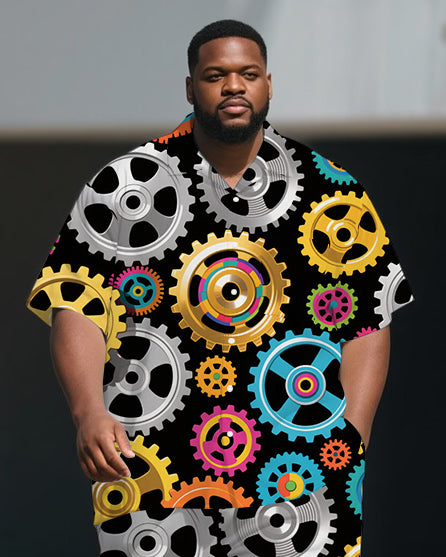 Big Guy's Fashion Cartoon Mechanical Roulette Printed Casual Short-Sleeve Shirt Pants Sets