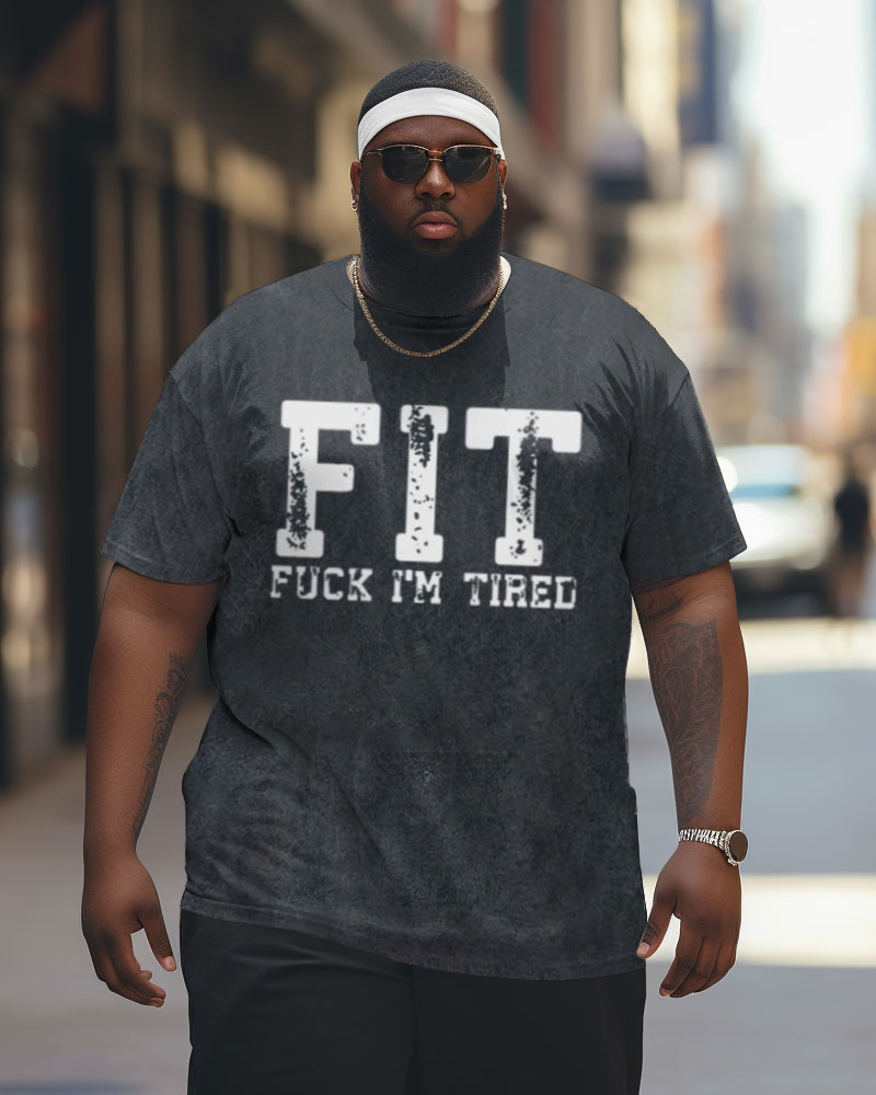 Keep it real with this playfully honest tee for big guys, featuring the bold "FIT - Fuck I'm Tired" acronym print for those who appreciate humor in everyday life. The relaxed regular fit offers all-day comfort, while the wash effect adds instant character. Perfect for expressing your mood with a touch of sarcasm.